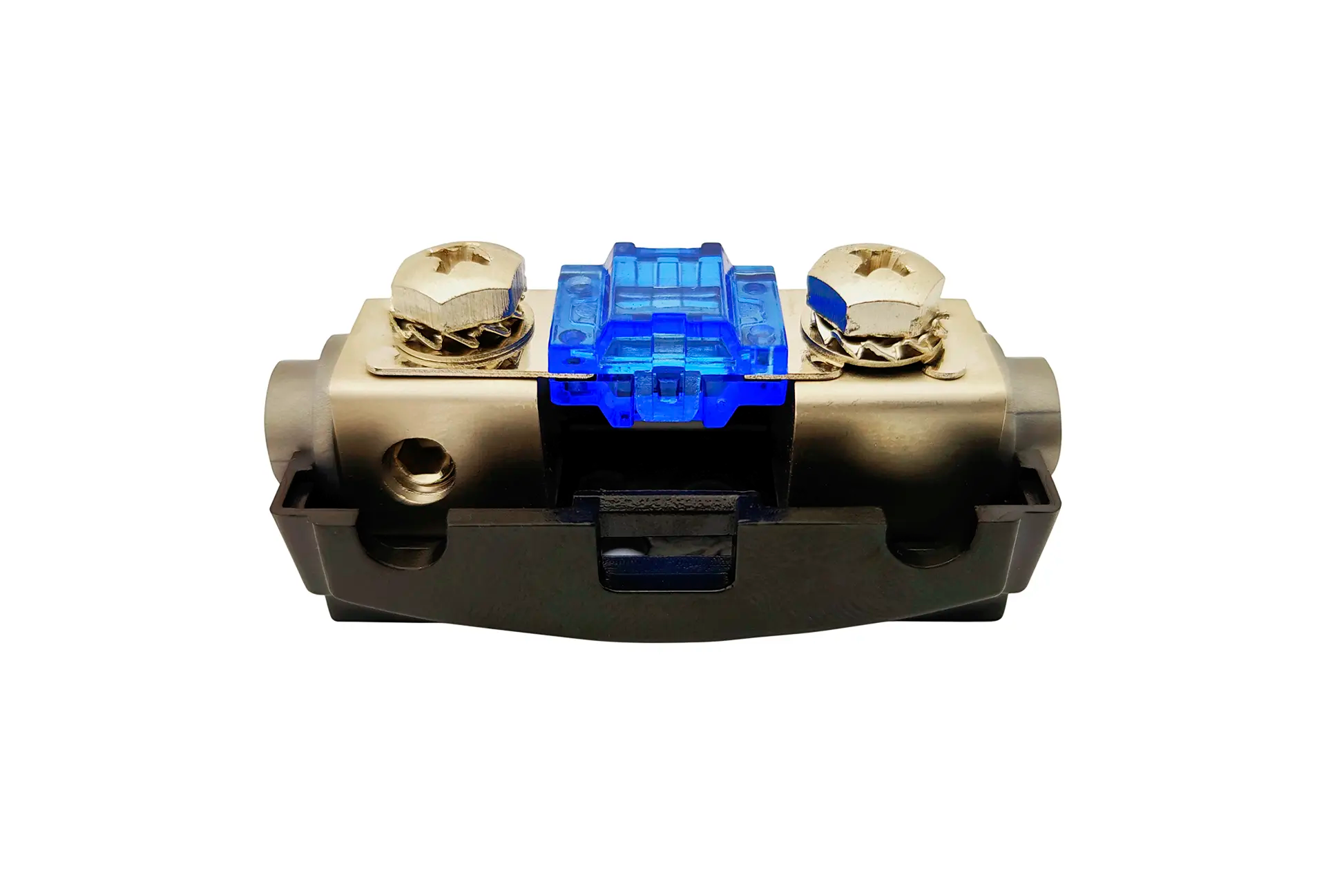 Machine tooled, the FBNL-60 mini ANL style fuse block/holder is platinum plated. The high conductivity allows for high current applications and maximum power delivery. Corrosion resistance and long durability make the FBNL-60 the prime choice of professional installers.