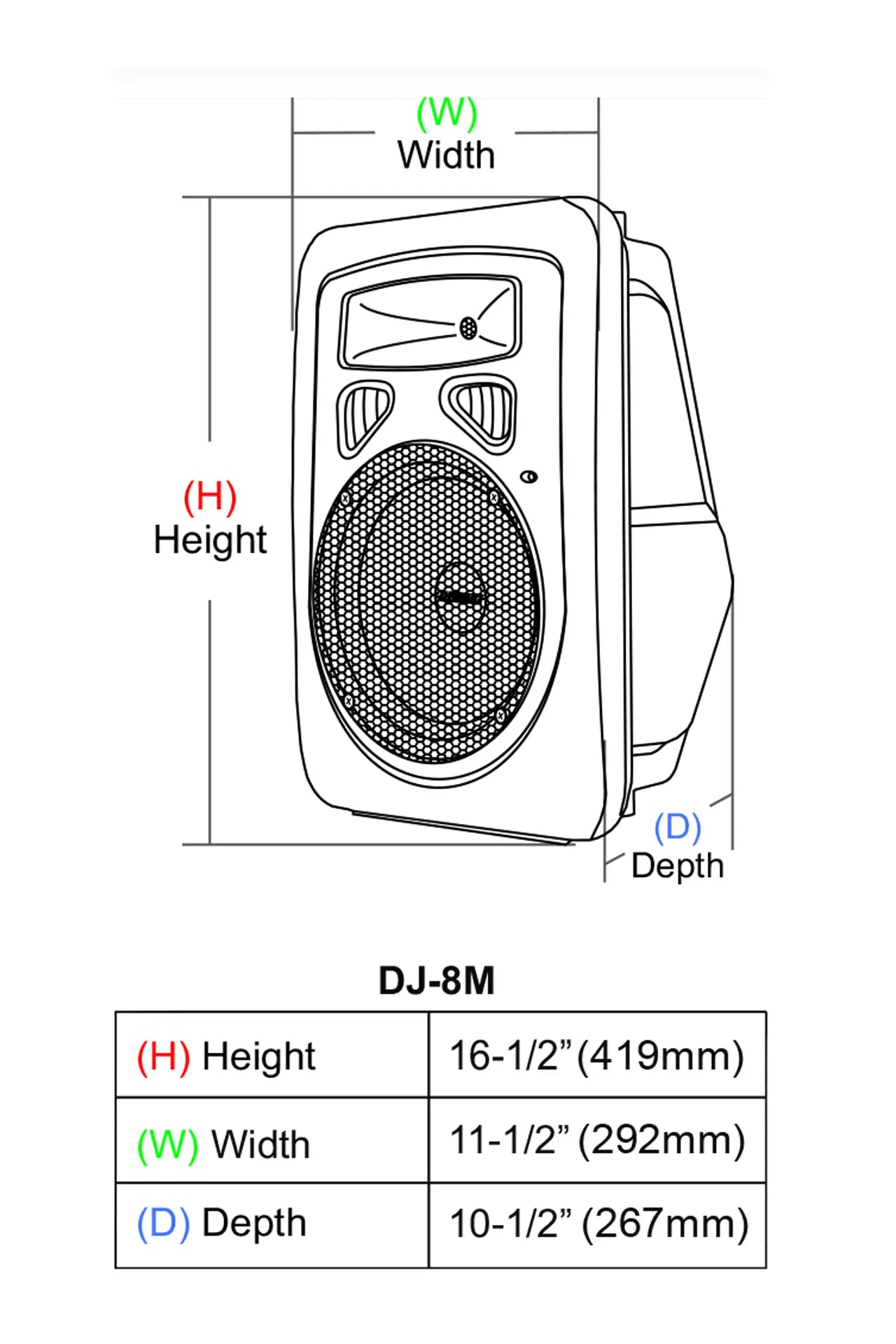 DJ-8M 8” Powered 2-Way Monitor/PA Speaker 480 Watts