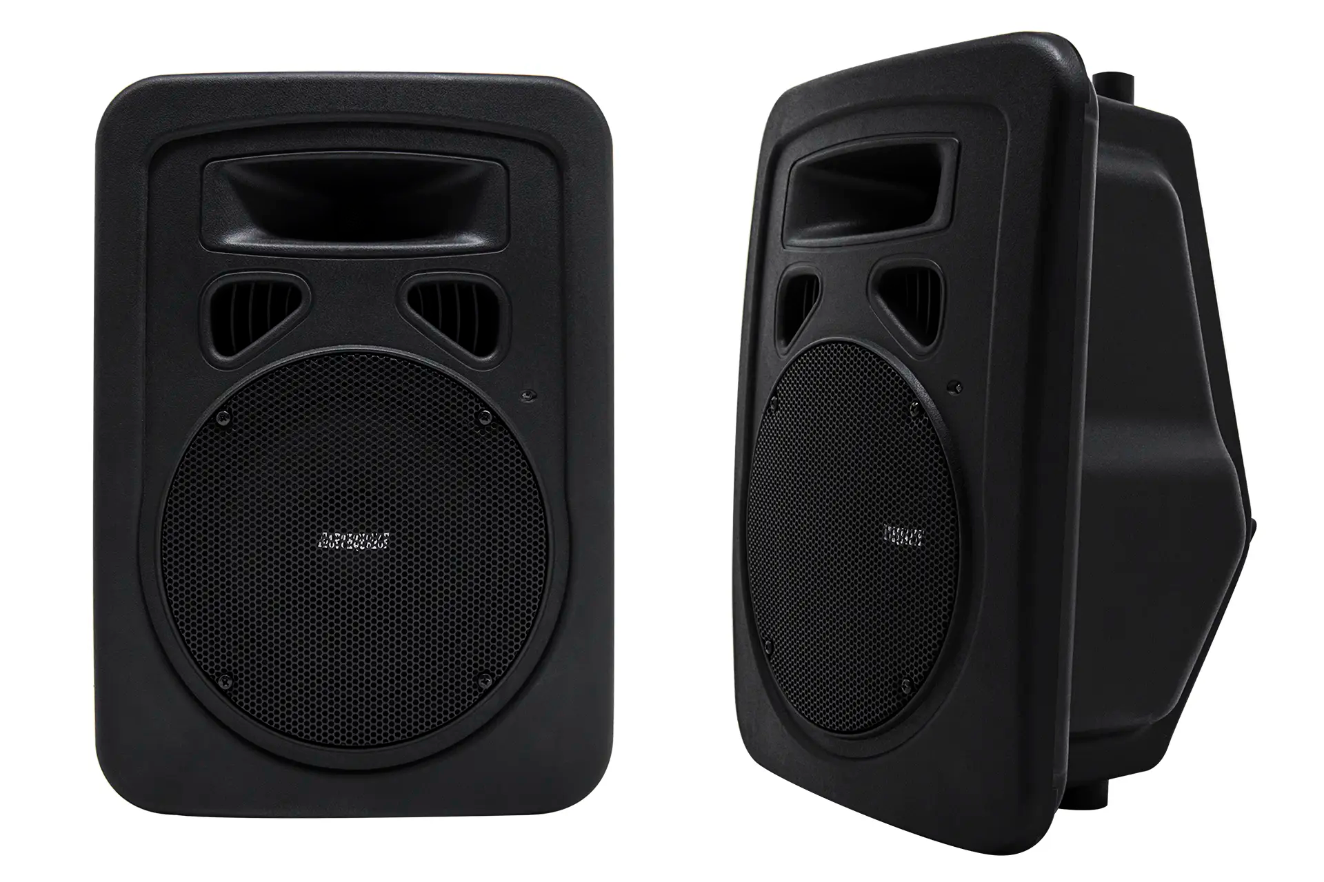 For easy system integration, each DJ-8M is self-powered using a high efficiency 480 Watt MAX amplifier. A 1/4″ Jack input for microphone means you can connect a dynamic microphone directly to the system for quick on-the-fly speak applications. It can easily be placed on any surface or mounted on a pole.