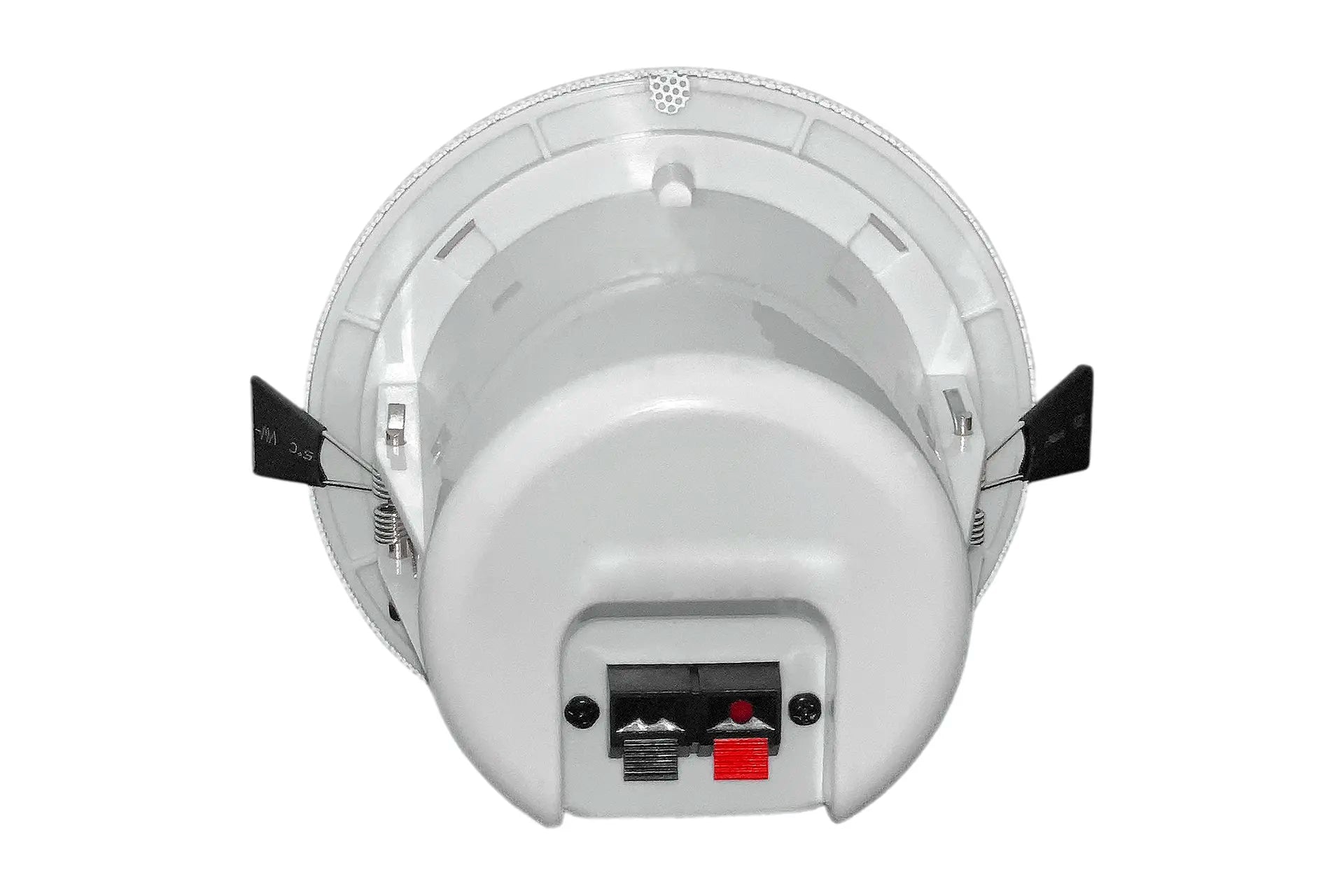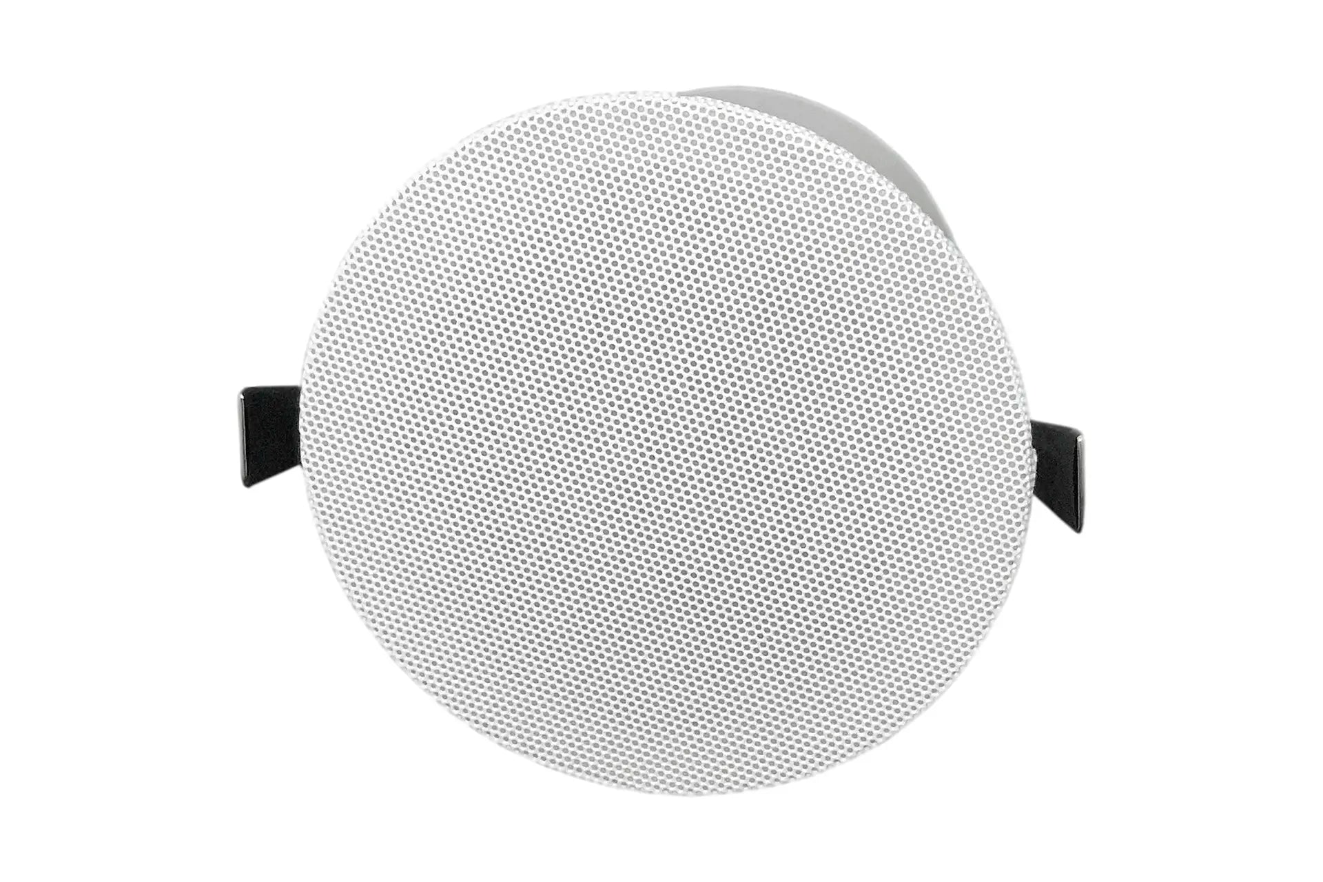 The self-enclosed design with humidity resistant components provide users with a broader range of installation options such as bathrooms, kitchens and outdoor living spaces are just a few examples. Installation is made painless from a tool-less mounting system that makes your install faster and more efficient by simply pushing the speaker into any 99mm diameter hole with a depth of 3 inches. The edgeless and paintable grille further enhances this speaker by allowing it to vanish and not interrupt the décor of the room.