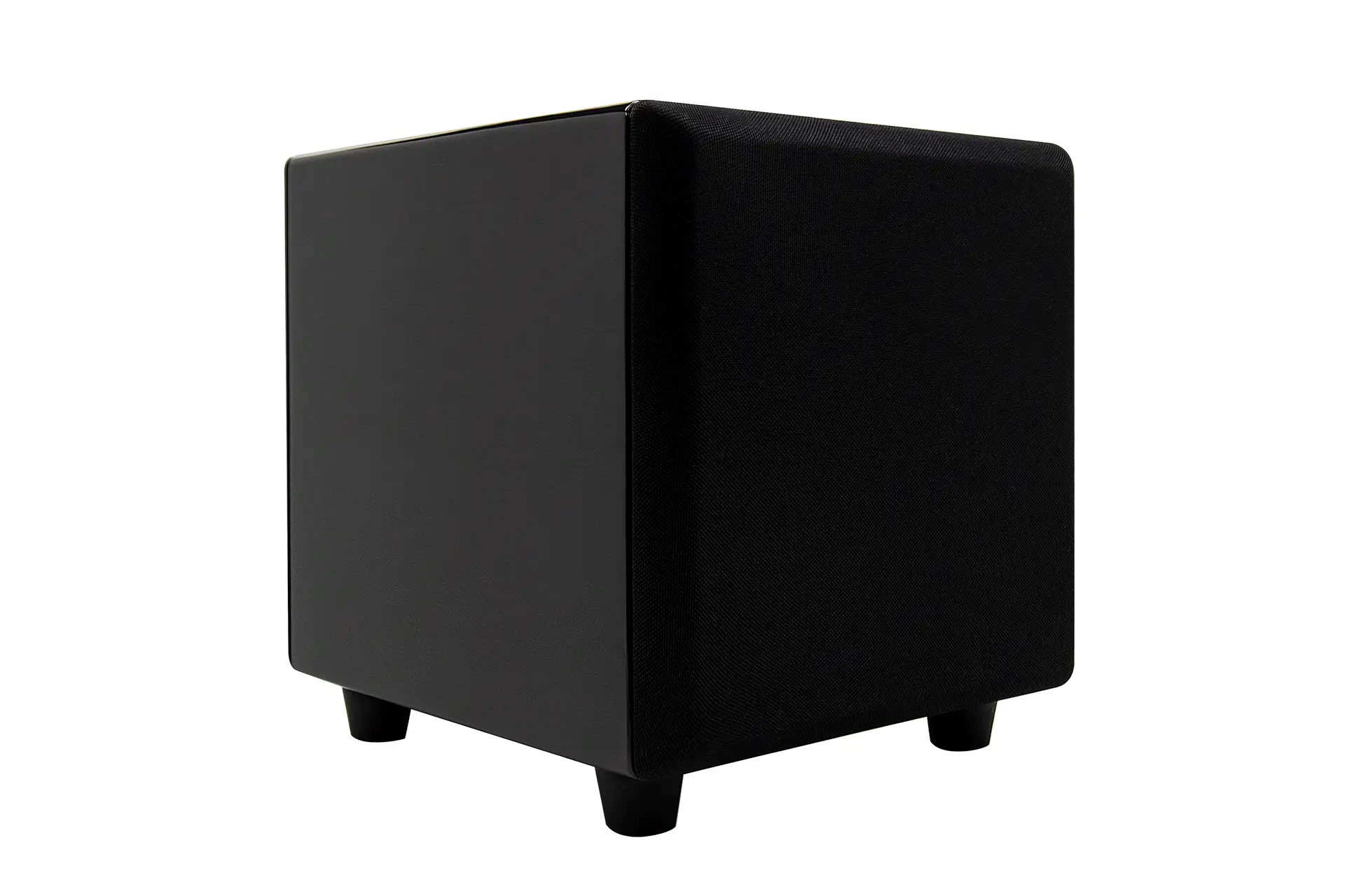 MiniMe-P8-V2 is covered in deep luxurious black piano lacquer. The cabinet finish begins with a thorough sanding and priming followed by multiple applications of black lacquer with additional fine sanding between layers. The cabinet is then finished with a smooth, high gloss clear coat. The elegant piano lacquer complements its compact modern design and in a sculptural way adds finesse and exclusivity to your home.