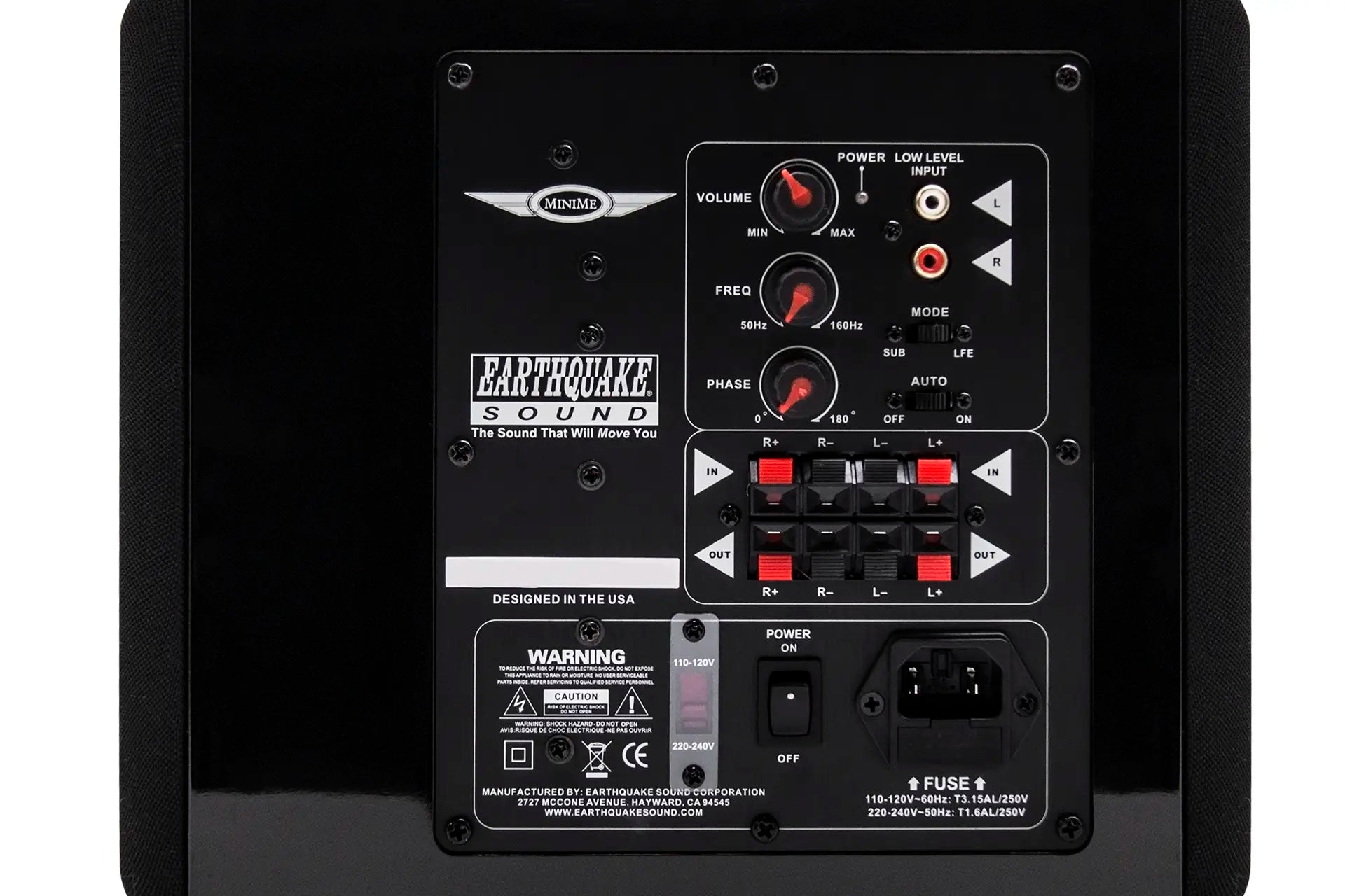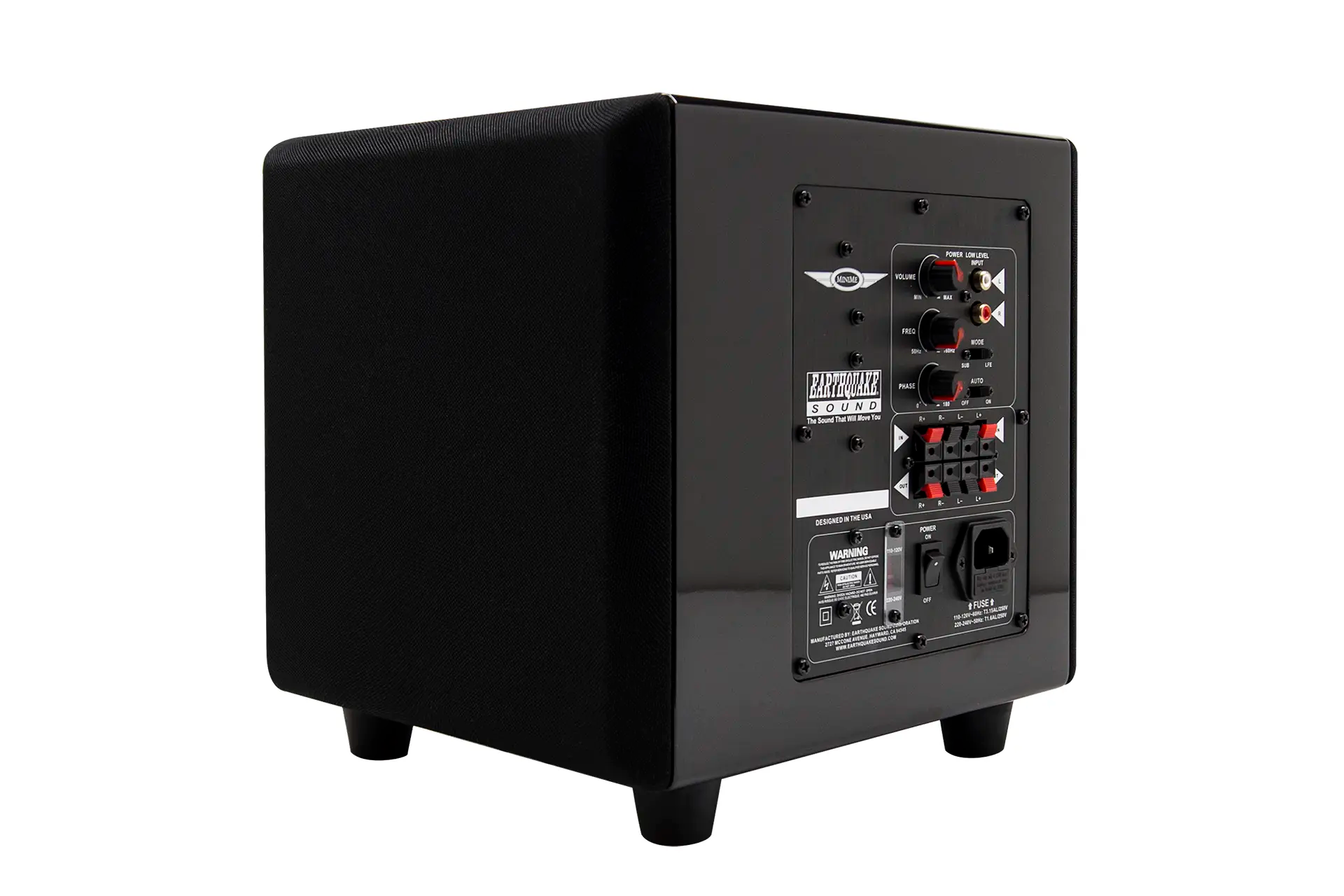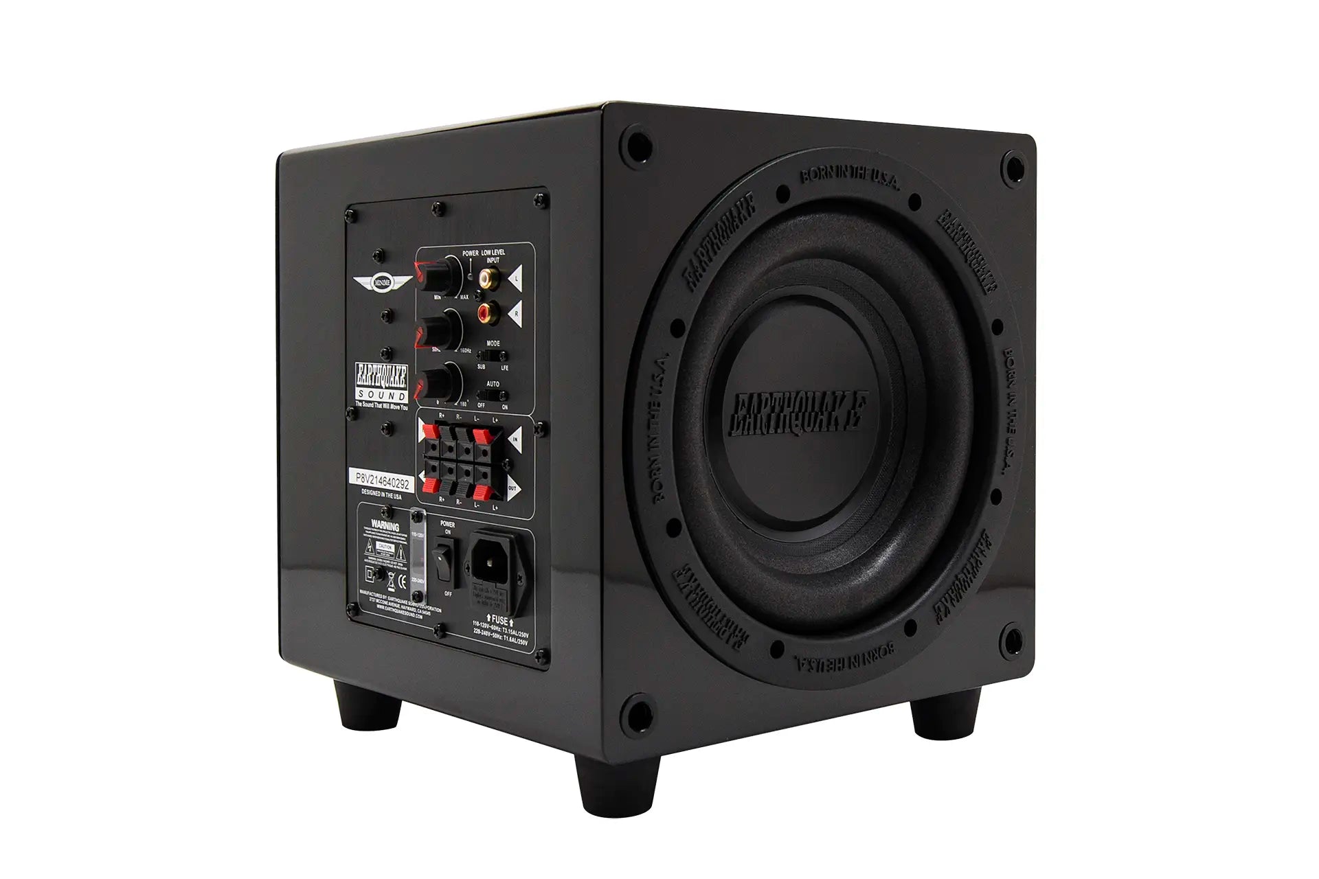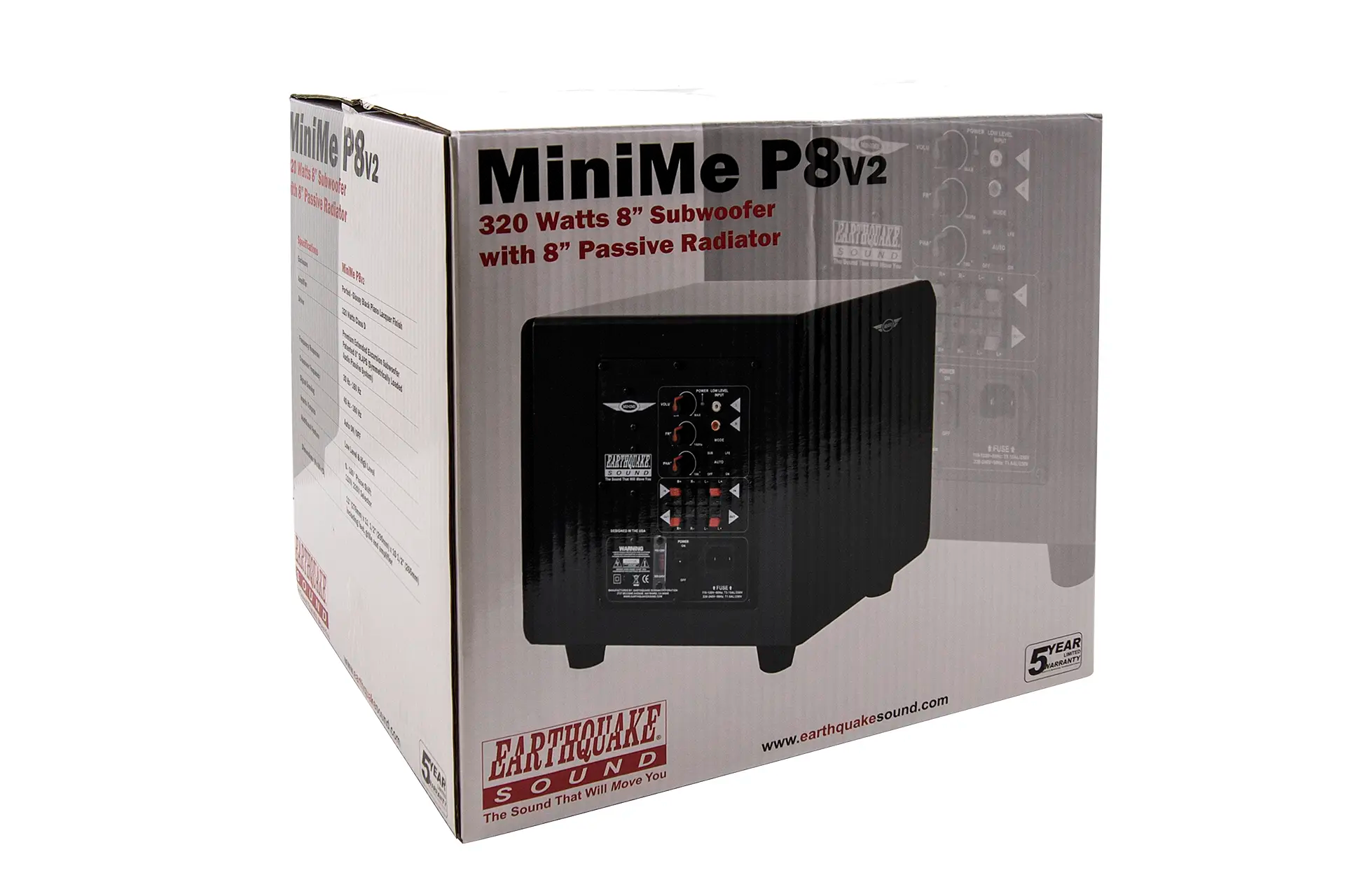 MiniMe-P8-V2 is equipped with an over sized 320-watt Class D amplifier. The advanced Class D technology has an efficiency of 90% which means that the amplifier does not get hot even with hard and continuous operation. Earthquake's unique Evolved Class D design is distinguished by high performance and superb bass control. Even the most complex source material is reproduced articulated and precise.