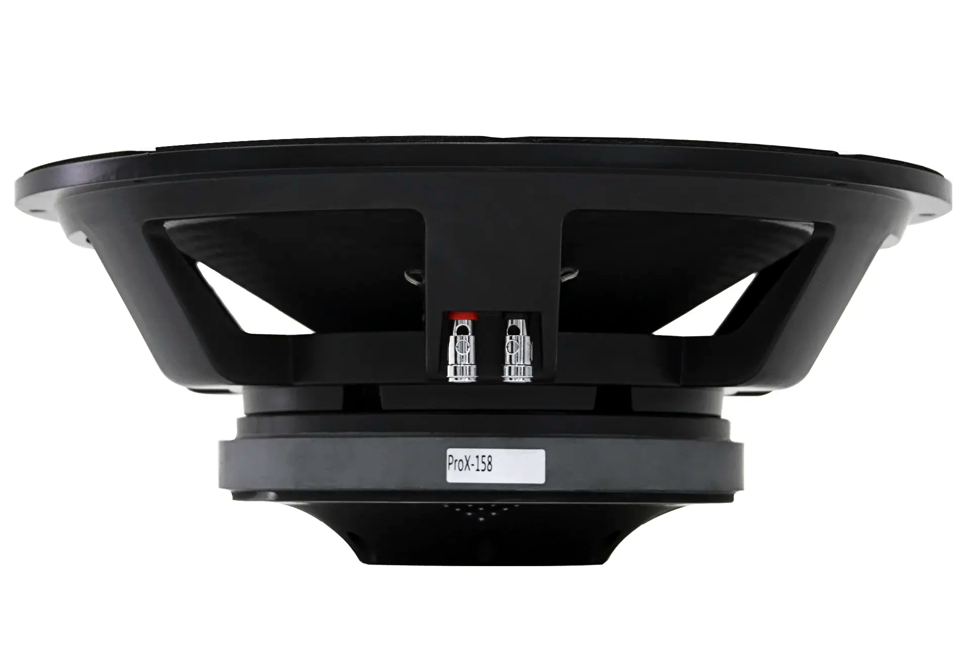 The brute magnetic force in the Pro-X is supplied by an oversized ceramic magnet. This high Gauss magnet concentrates immense magnetic flux on the voice coil resulting in stellar efficiency and tight chest slamming low frequency response. Designed with a bumped back extended pole piece for added excursion potential. This also protects the voice coil from bottoming out in case of transient overload.