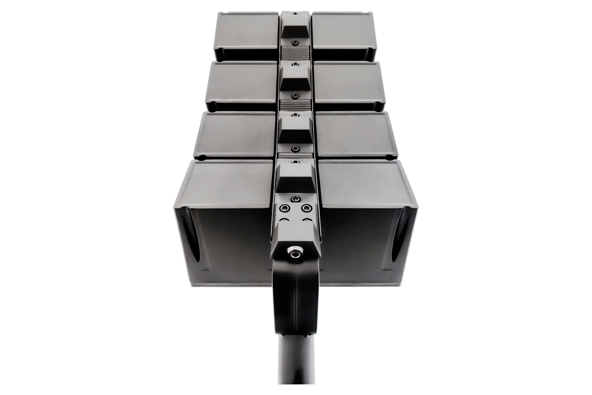 Many DJs and audio enthusiasts whose primary focus is keeping the party going have been scared off Line Arrays because of high price and an aura of mystique and difficulty using them. As our engineers analyzed the pro use of line arrays it became clear that existing systems were overly complicated. When you trim off all the voodoo surrounding the difficulty using line arrays - you are left with simply needing: