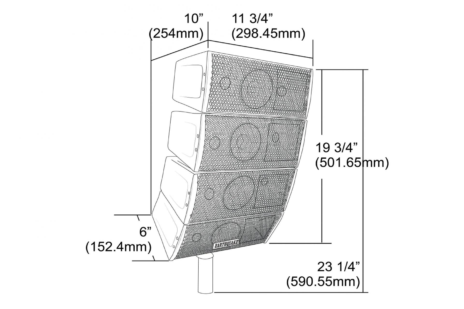 - Midbass: 4" (101.6mm) / 1" (25mm) voice coil (8-Ohm per Array/Channel)
