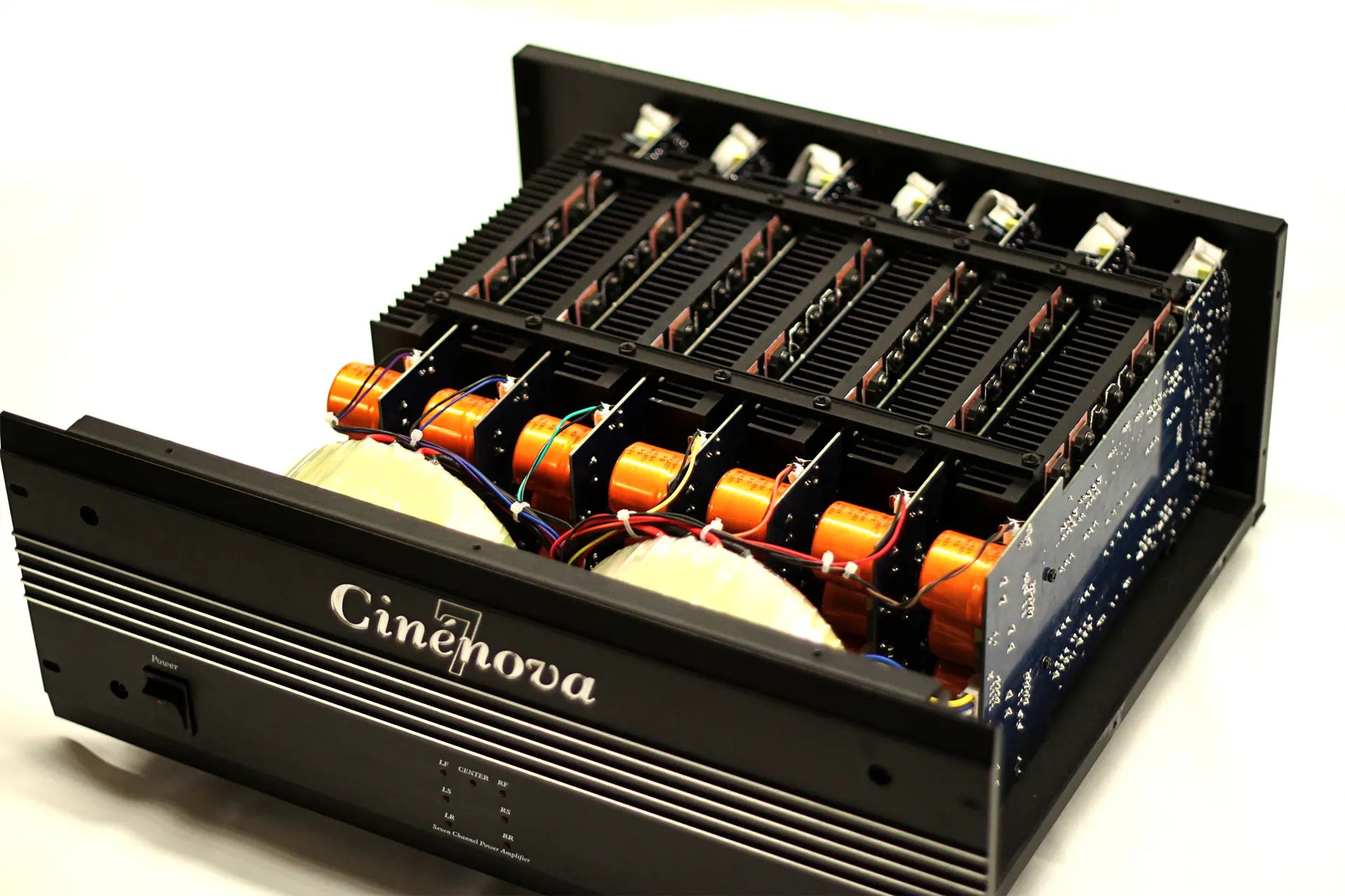 Since its inception the Cinénova design concept has been a tempered blend of traditional high-end virtues combined with innovative and novel circuitry design. Produced using in-house proprietary manufacturing techniques this tradition lives on in the new Cinénova 7 with a completely monaural design and enhanced class AB operation. The result is industry leading efficiency making the Cinénova 7 a true green amplifier.