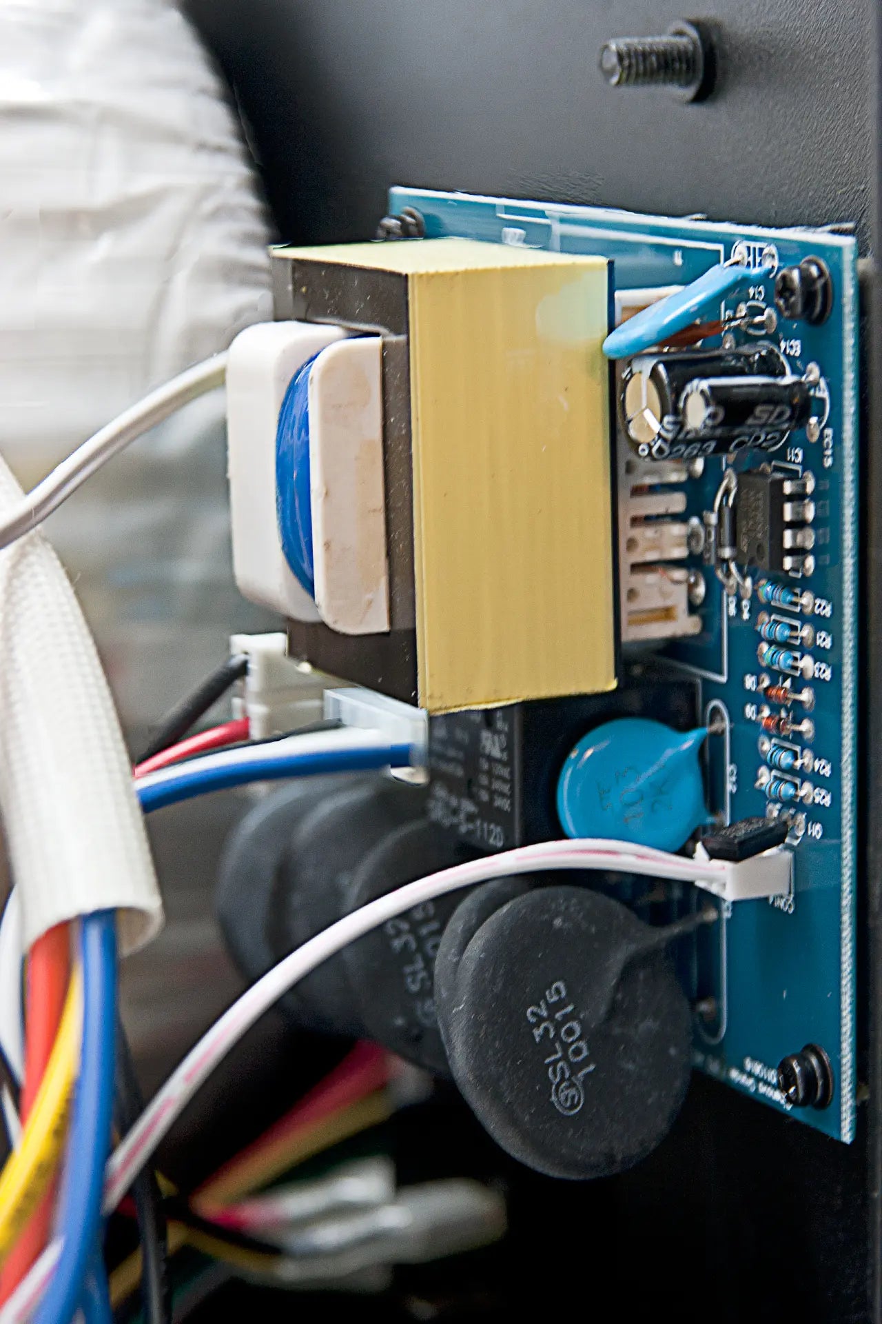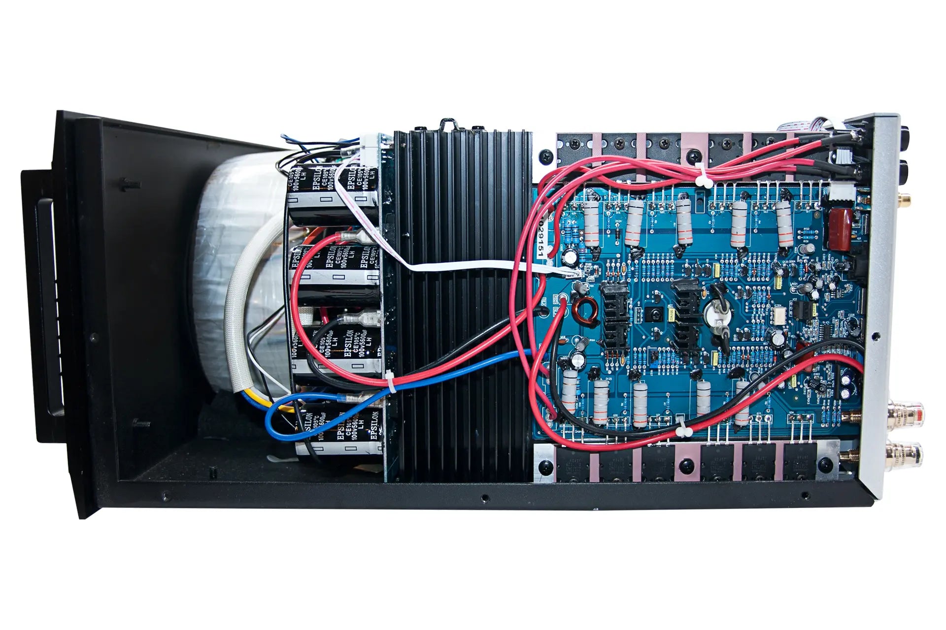 By exclusively using mil-spec FR-4 printed circuit boards in the Cinénova Grande, problems with "cold" solder joints and PCB warping due to thermal effects or other environmental factors were eliminated. The benefit of this is that the usage and intensity of use is no longer a factor for the amplifier's durability and longevity. To achieve an extremely low resistance and preserve signal integrity the traces on the circuit board are of the 3 ounce oxygen-free copper type.