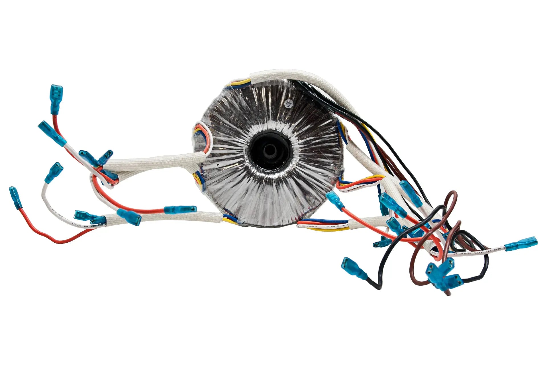 Power supply efficiency, stiffness and strength are dependent on several factors. The ConCurrent design is the culmination of intense optimization of all known parameters. To stiffen the supply (lower regulation factor) the transformer cores are made of ferrite instead of a lower grade iron material. The windings are made with the same oxygen free copper that is used in high-end speaker cables. To ensure a low hum operation, the transformer is hard-wound and made with military grade high temperature lacquer. The ConCurrent power supply in the Cinénova Grande BR has a transformer rating of 4000VA.