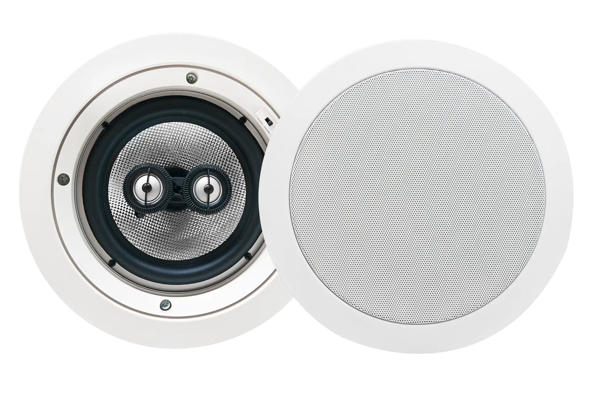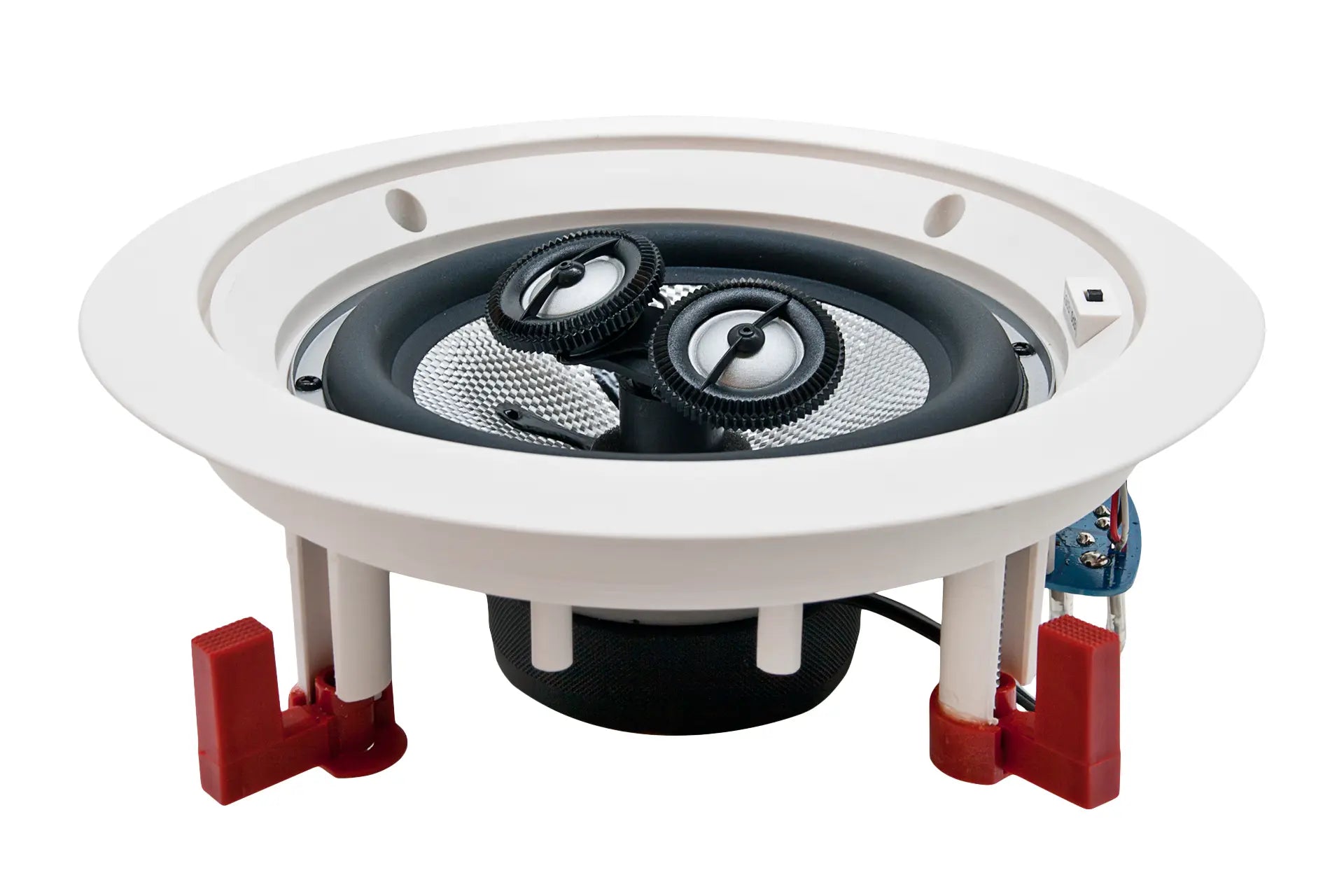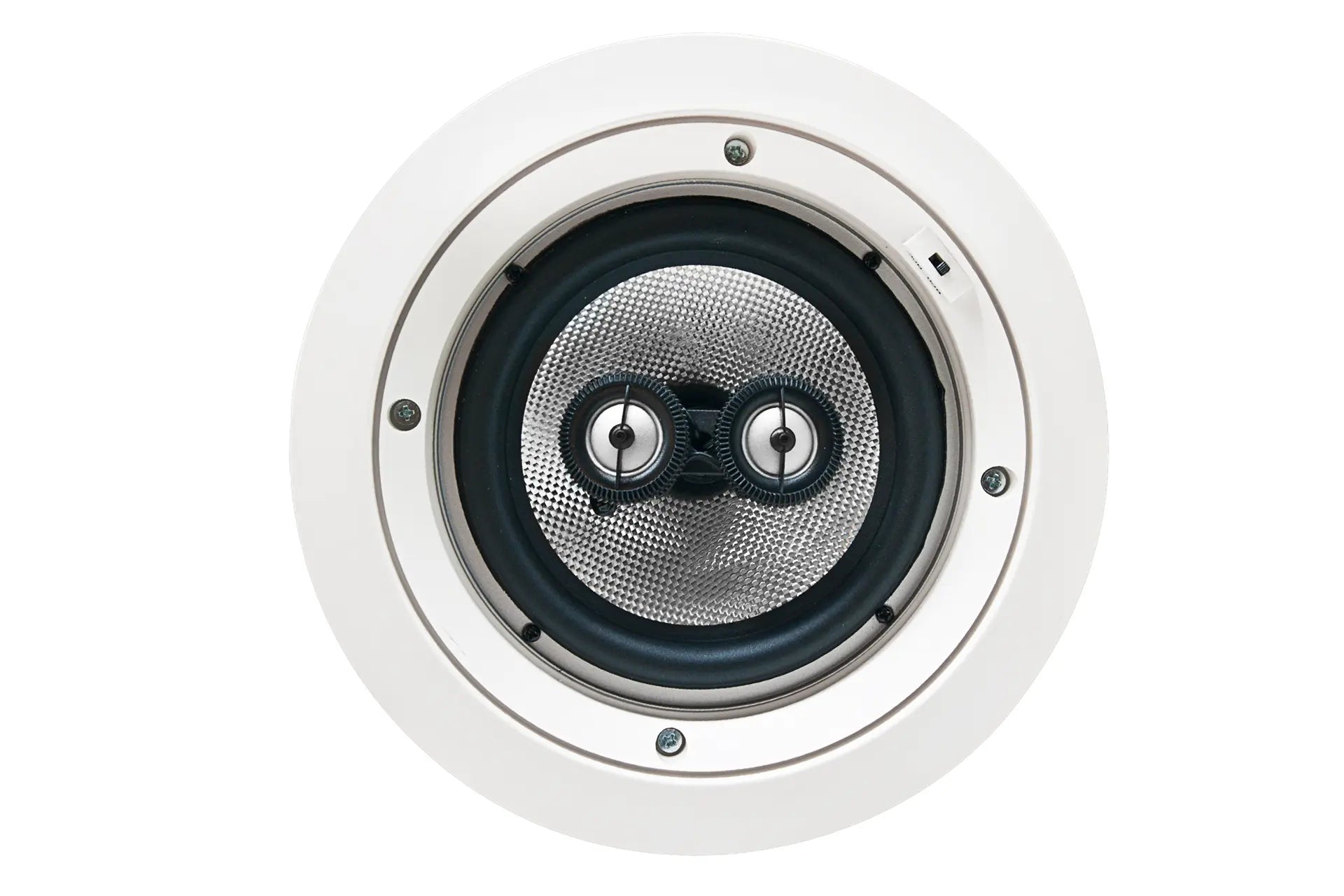 The IQ in-ceiling speaker series features the dual tweeter swivel system. Mounted on a rotating ball, these dual tweeters can be positioned to optimize sound quality for the listeners.The 20 degree offset between the two tweeters allows them to produce line-on-axis response from the front to the back of the room while maintaining maximum stereo separation.