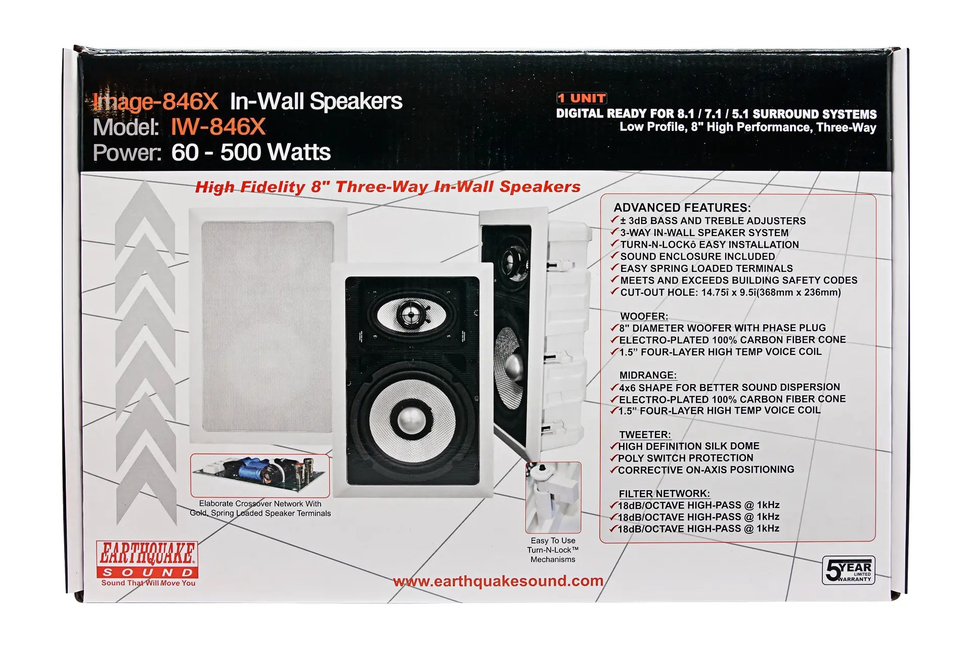 Earthquake engineers have spent countless hours perfecting the Imãge-846X so it can reproduce sound as if you are sitting center stage. With paintable grilles and frames, the Imãge-846X is the speaker of choice when you seek both performance and elegance in your in-wall speaker system.