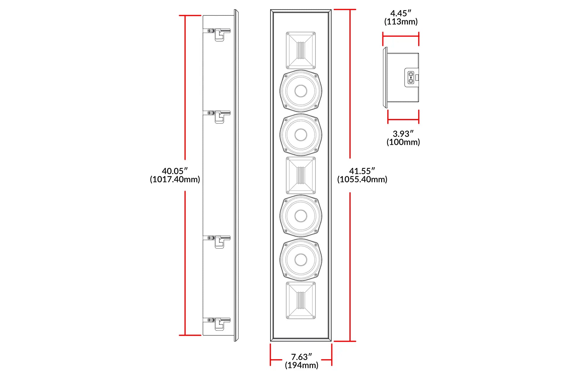 Installation is a breeze with dog ear style Turn-N-Lock™ mechanisms and included mounting template. The center wiring groove running through the enclosure enables pain-free wire management, ensuring a neat and professional look. This speaker also features an invisible trim that blends seamlessly into standard stud bays, offering a high-end aesthetic. The Earthquake Cinénova Clarté Line Array LCR Speaker imbues your media room with rich, breathtaking sound, free of distortion or coloration. An immersive listening experience awaits as you indulge in the wonders of music and movies, with exceptional sound reproduction and tonal balance. Embrace the magic of sound with the Cinénova Clarté Line Array LCR Speaker.