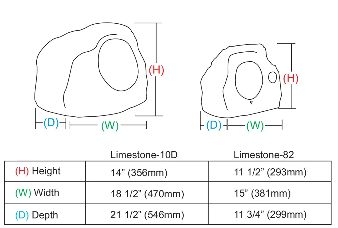 The Limestone-82 speaker and Limestone-10D subwoofer –  part of the  new  ROCK-on  outdoor  speaker  series,  are  specifically designed to  imitate a rock appearance and easily blend  in with any  outdoor  environment.