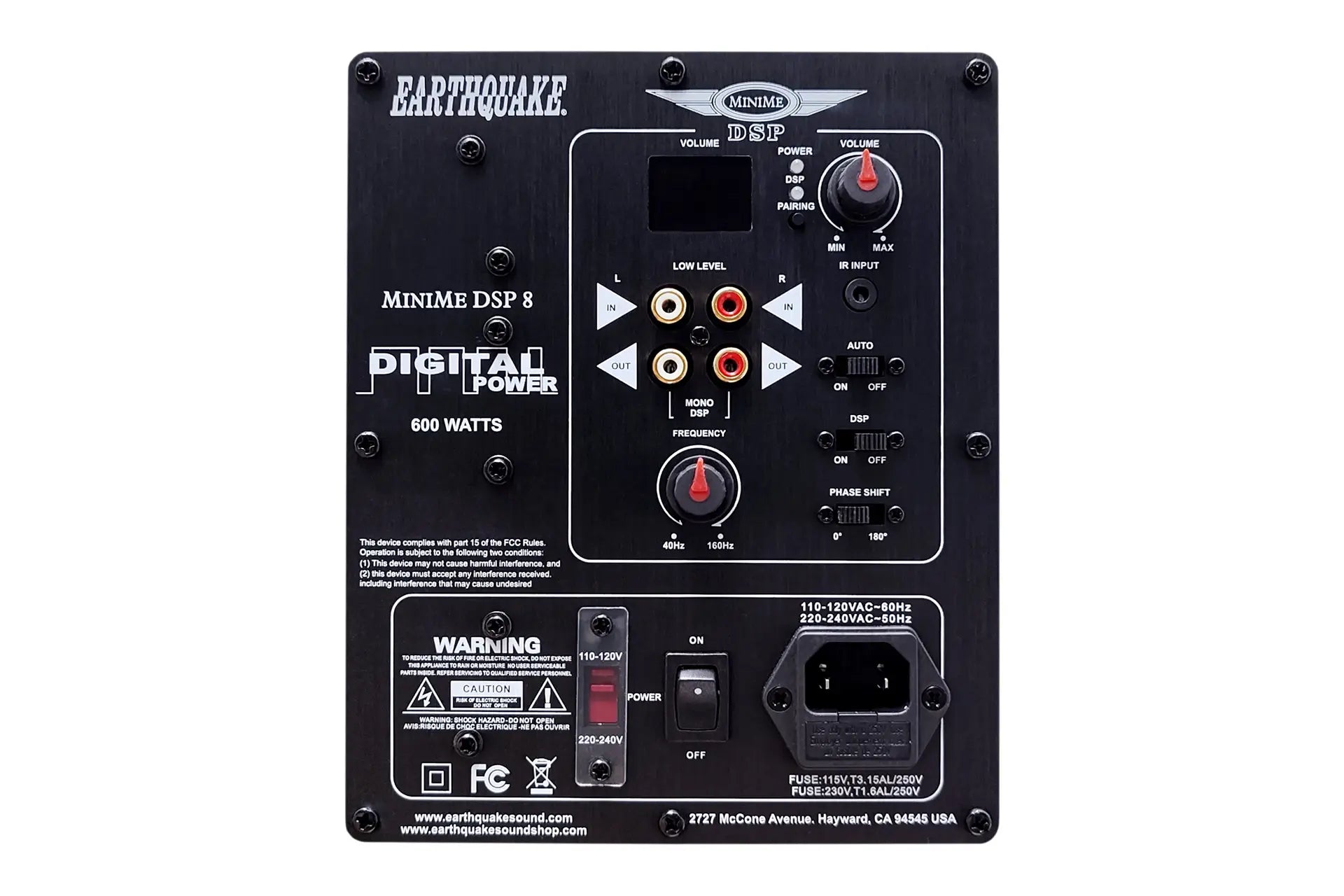 The all new ME-320-DSP is the amp used in the MiniMe DSP Subwoofers. It utilizes Earthquake’s advanced class “D” circuitry with over 90% efficiency plus the added benefits of DSP control through mobile devices. Professional room tuning is now made possible right through a mobile app allowing the user to dial in the sub exactly to the room that it is placed in. In order to optimize sound and clarity on a subwoofer, it must be tuned properly to its environment. Through an automated room correction process that the iWoofer™ Pro app offers, you will get the customized performance that you deserve and achieve the maximum amount of SPL and a more linear response for your home theater. Up to a 48dB/octave crossover is also available within the application for a steep frequency cutoff. The ME-320-DSP is based on the same metal plate and hole pattern as the amps used in the MiniMe-P8-V2 and DSP so it is the perfect replacement of an old plate amp or a great update to get the new DSP features. The amplifier is built around Earthquakes Evolved Class D amplifier technology. It uses an efficient and low frequency optimized PWM switching output - resulting in exceptional powerful control over even large and heavy woofers. The amplifier is equipped with 4 high ampere discrete transistors for high and continuous current. No cheap monolith output modules here. The oversized Evolved Class D amplifier has an efficiency of 90% which means that the amplifier does not get hot even with hard and continuous operation. This unique class D design distinguishes itself with high performance and superb bass control. Even the most complex source material is reproduced with precision. The power supply is based on Earthquakes Triple Triangle Constant Power Transfer Technology. It is an advanced industrial switch mode power supply technology, inherited from Earthquakes military power supplies. It guarantees constant high performance even with heavy loads, all with minimal power loss and heat generation.