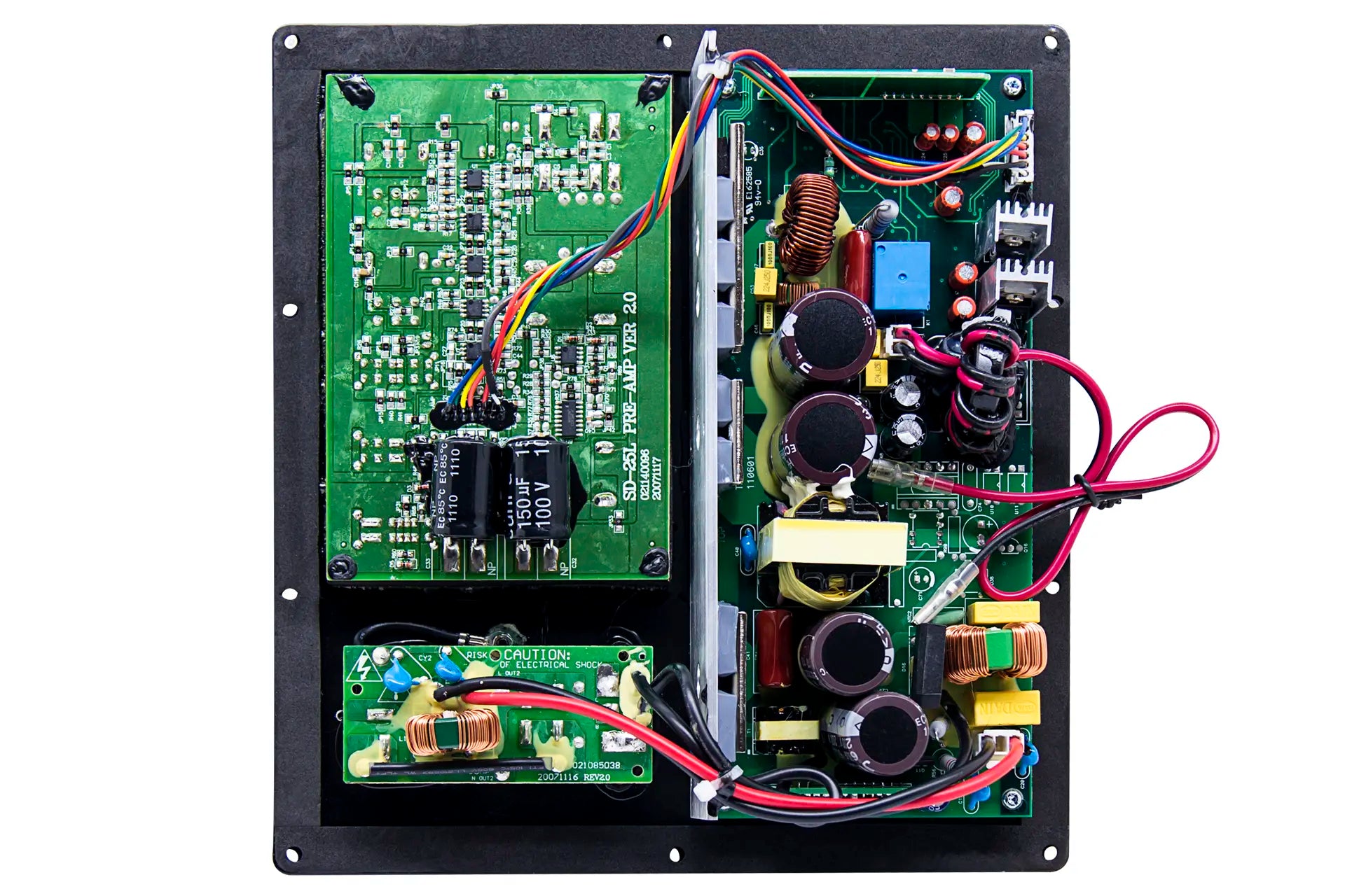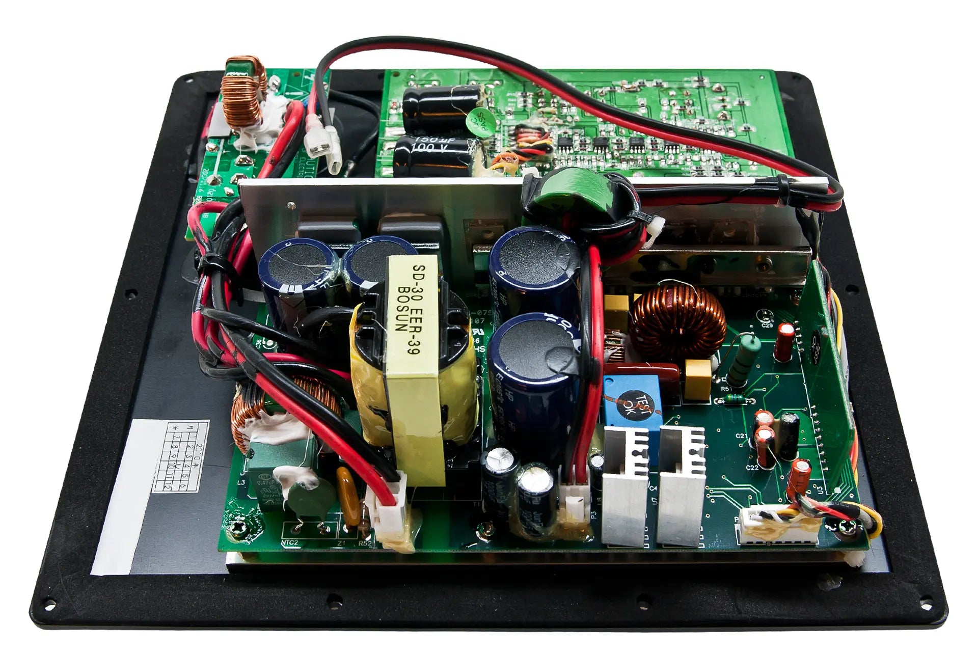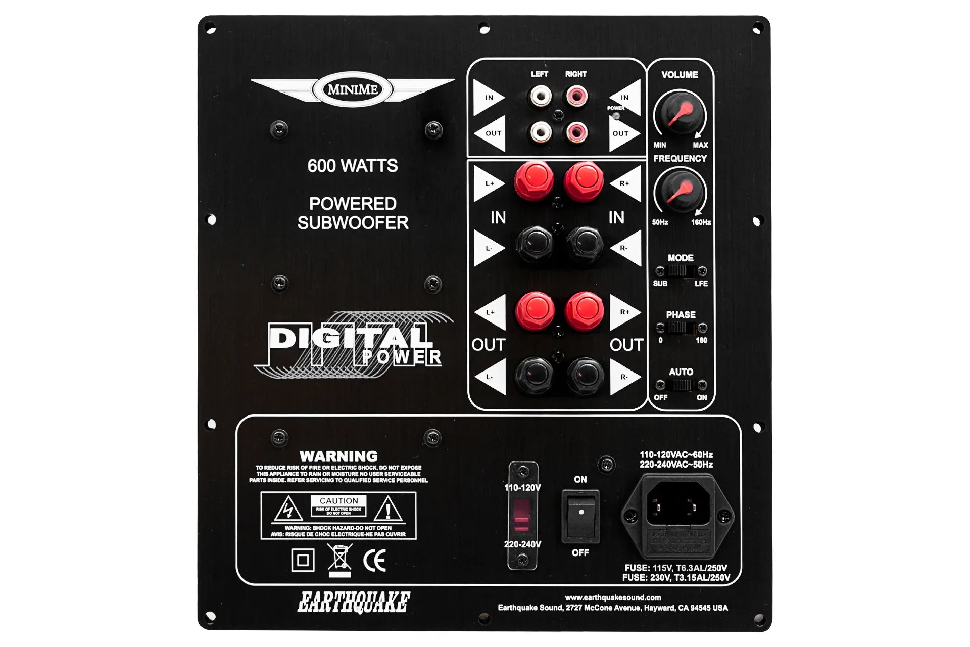 The amplifier is built around Earthquakes  Evolved Class D amplifier technology. It uses an efficient and low frequency optimized PWM switching output -  resulting in  exceptional powerful control over even large and heavy woofers. The amplifier is equipped with 6 high ampere discrete transistors for high and continuous current. No cheap monolith output modules here.