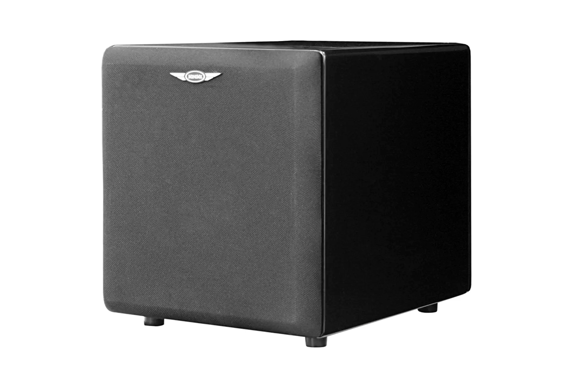 The MiniMe V2 is covered in deep luxurious black piano lacquer. The cabinet finish begins with a thorough sanding and priming followed by multiple applications of black lacquer with additional fine sanding between layers. The cabinet is then finished with a smooth, high gloss clear coat. The elegant piano lacquer complements its compact modern design and in a sculptural way adds finesse and exclusivity to your home.