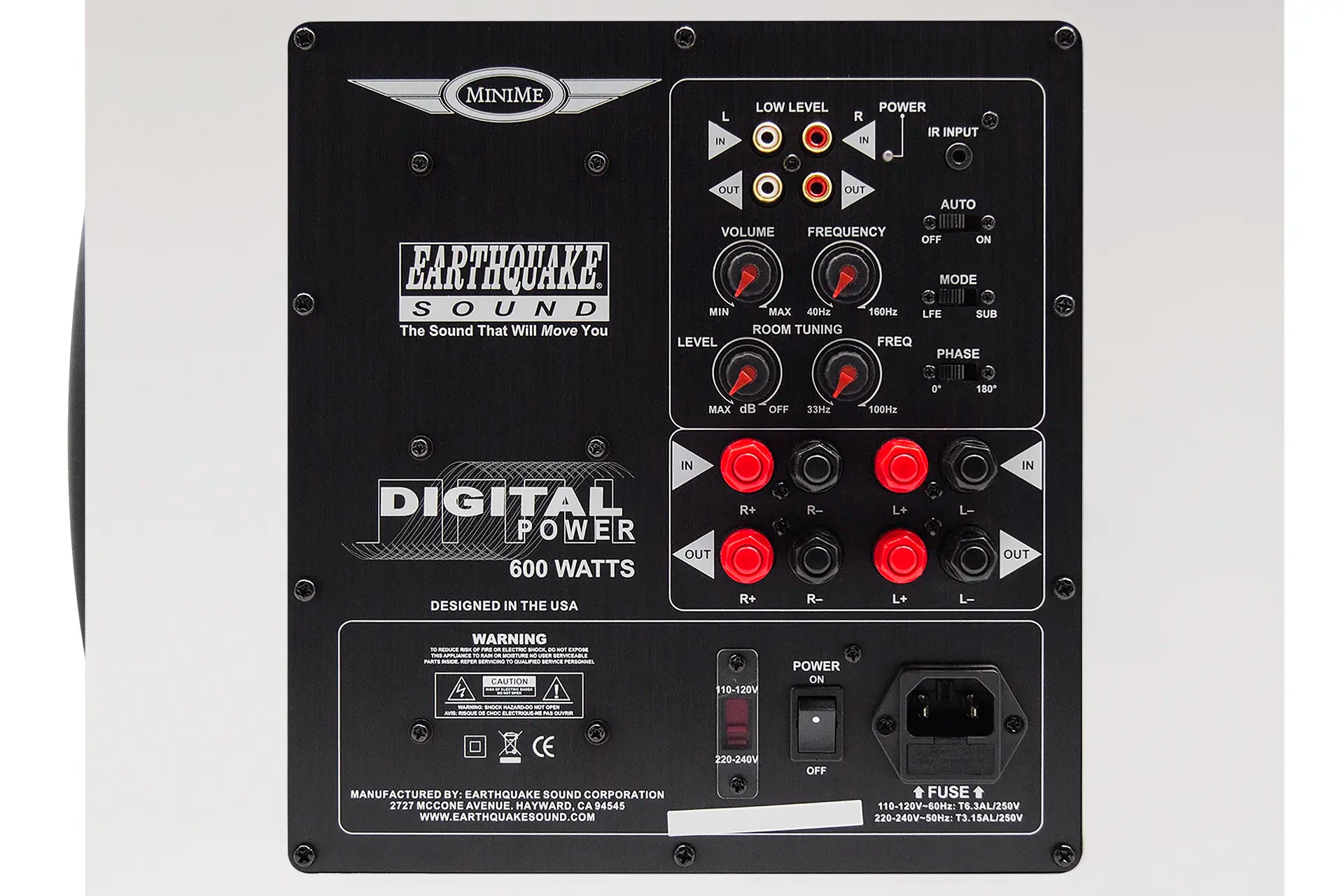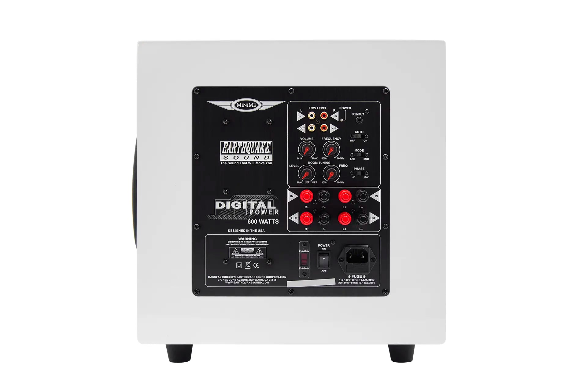 MiniMe V2 is equipped with an over sized 700-watt Class D amplifier. The advanced Class D technology has an efficiency of 90% which means that the amplifier does not get hot even with hard and continuous operation. Earthquake's unique Evolved Class D design is distinguished by high performance and superb bass control. Even the most complex source material is reproduced articulated and precise.