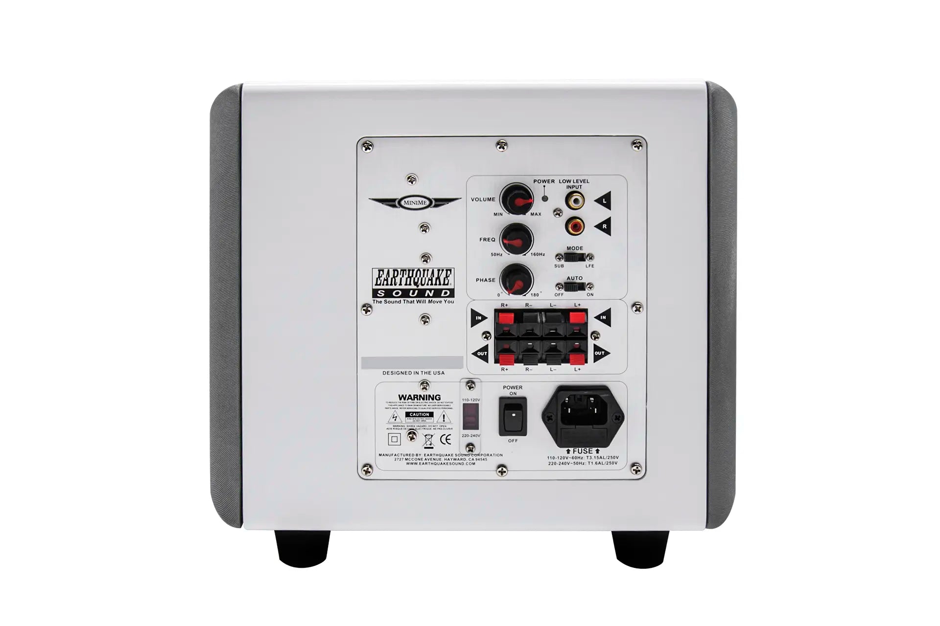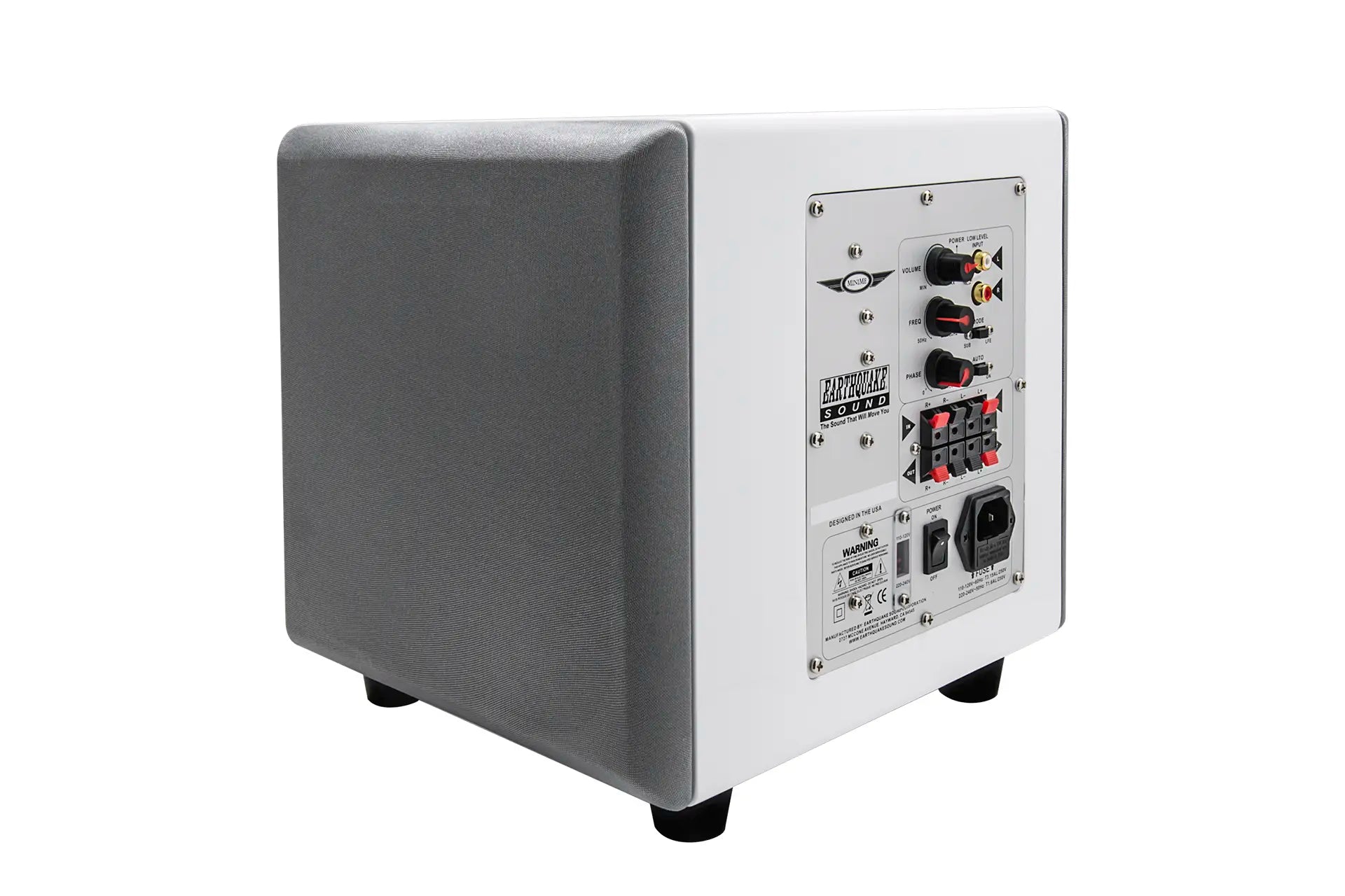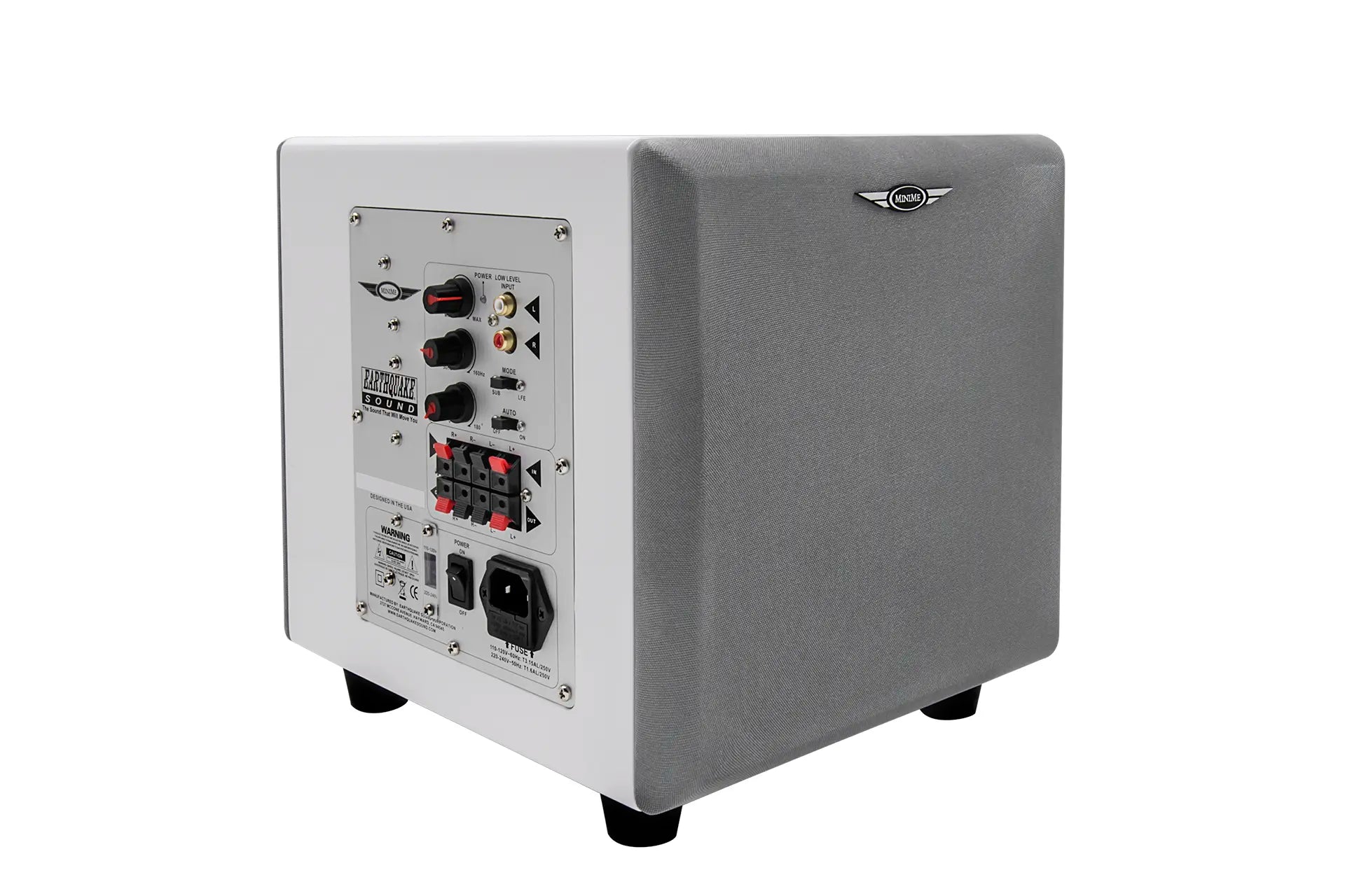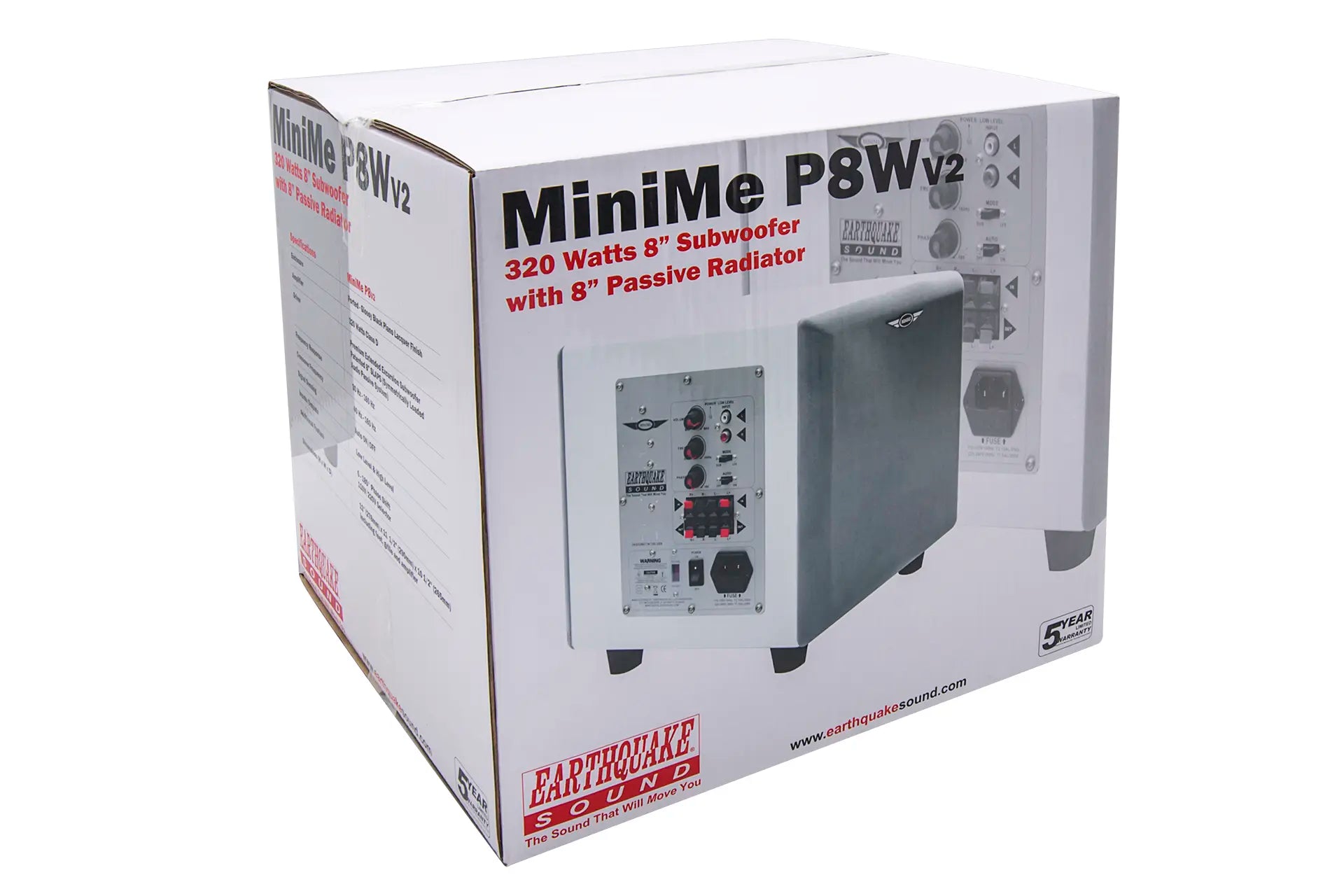 MiniMe-P8-V2 is equipped with an over sized 320-watt Class D amplifier. The advanced Class D technology has an efficiency of 90% which means that the amplifier does not get hot even with hard and continuous operation. Earthquake's unique Evolved Class D design is distinguished by high performance and superb bass control. Even the most complex source material is reproduced articulated and precise.