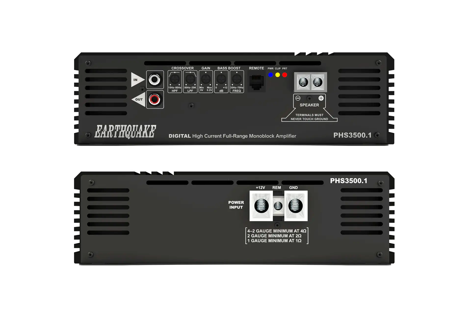 • Power Output: 1200 WRMS @ 4Ω / 1% THD, 2000 WRMS @ 2Ω / 1% THD, 3500 WRMS @ 1Ω / 1% THD