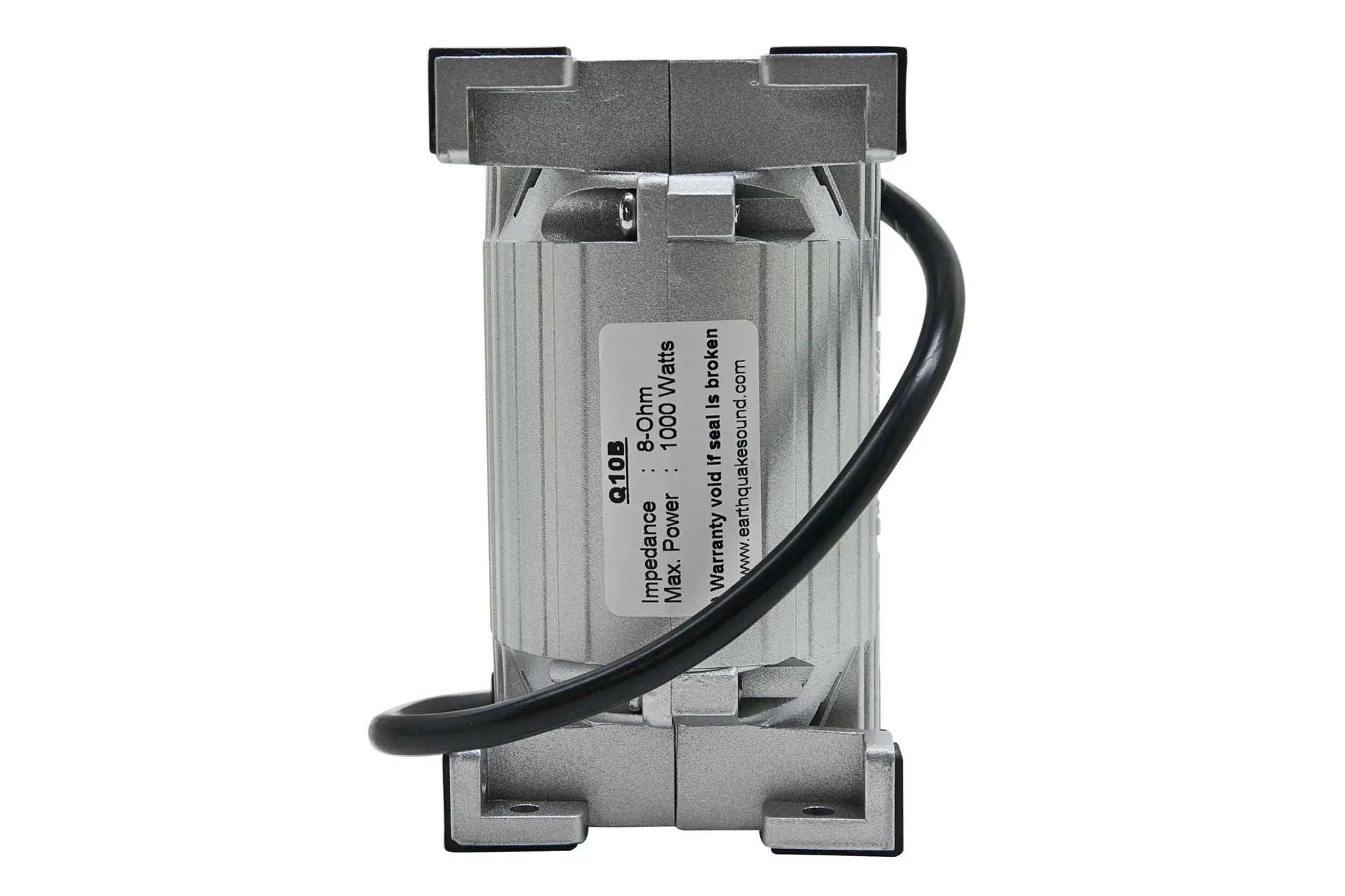 The Quake 10.0  motor system is built around  ultra high-gauss neodynium magnets and  a military grade flat wire voice coil.  Quake 10.0 can produce  5 cm of earthquake inducing stroke and response as low as 5 hz.