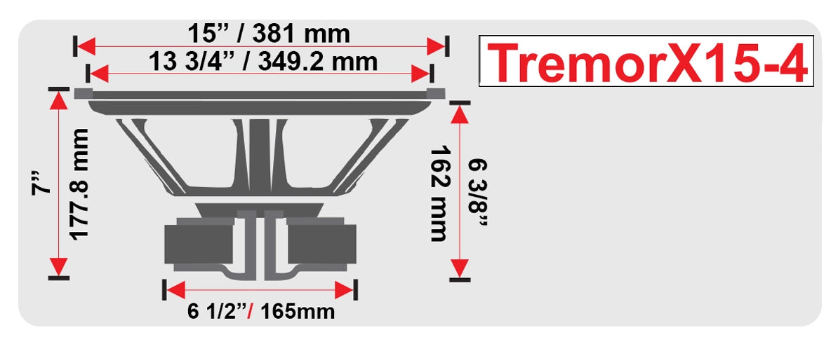 TremorX is based on Earthquakes signature  XLT chassis geometry. It is the optimal design for extreme excursion. The XLT chassis allows for  extra length between the spider (center suspension) and the magnetic gap. And it is designed to accommodate oversized spiders and voice coils.