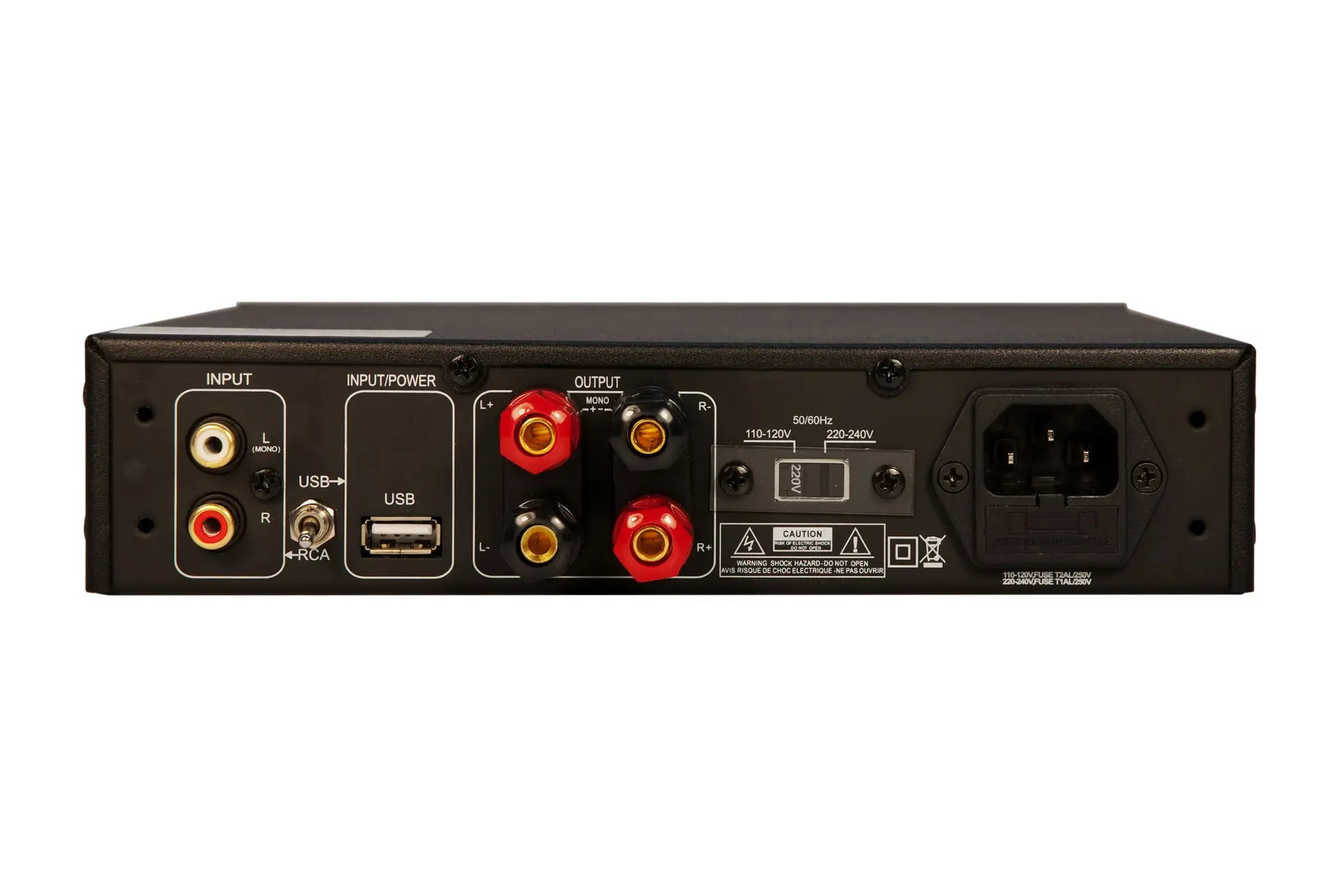 The XJ-300FR produces continuous rock solid power - 110 Watts RMS at 8 ohms pr channel and 320 Watts RMS bridged into 8 ohm.
