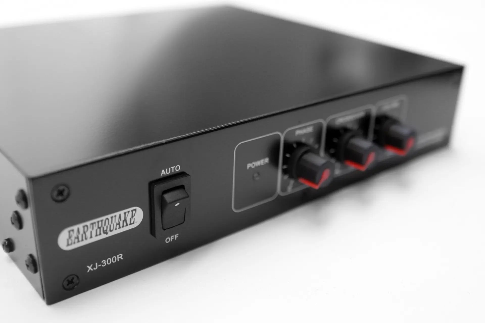 XJ300 is equipped with variable electronic crossover which is infinitely adjustable from 40Hz to 175 Hz. The optimal setting depends on the connected subwoofer or tactile device. Xj300 also has a continuously variable phase adjustment function, where phase can be changed between 0 and 180 degrees.