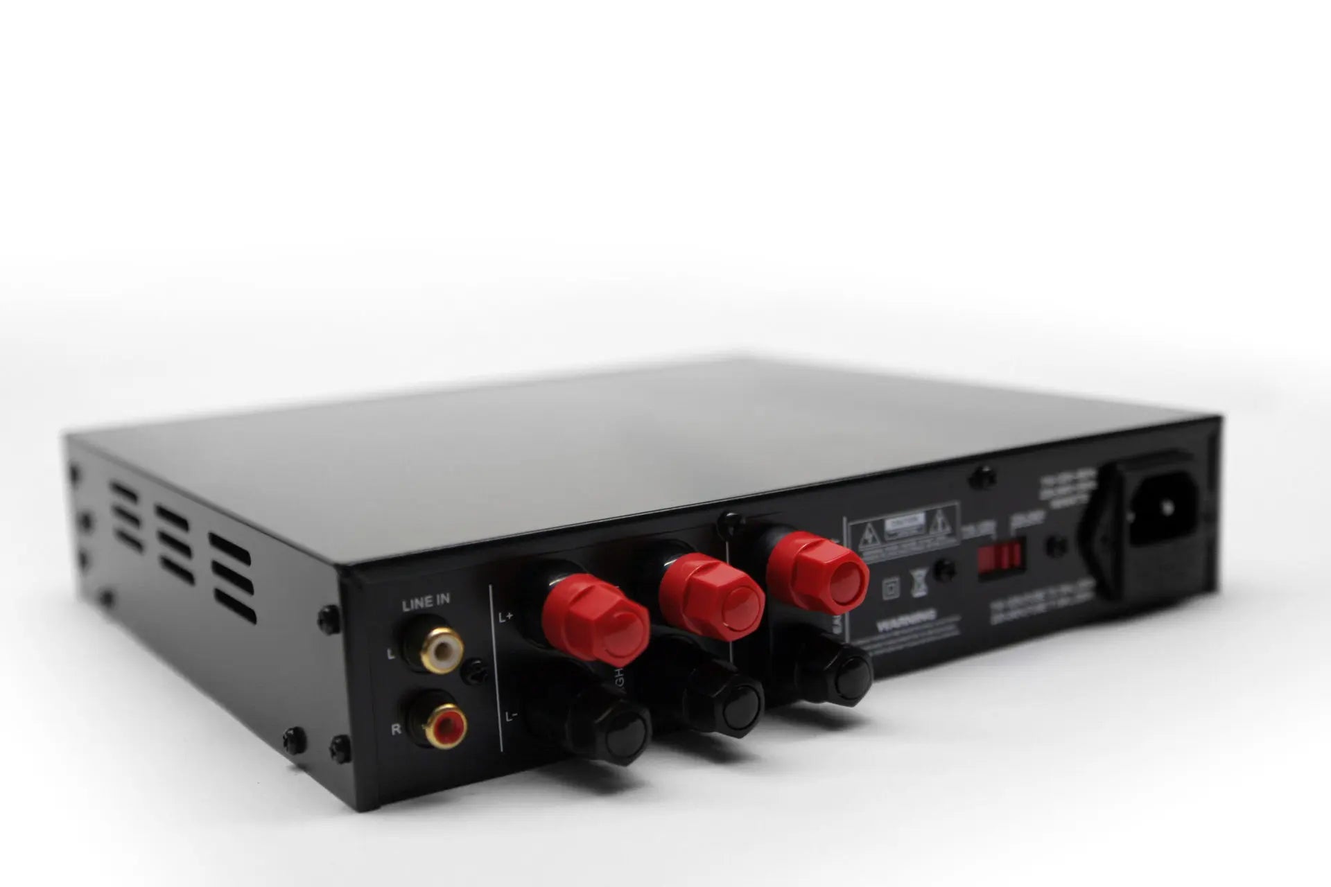 XJ300 is very flexible and can be connected to both line level RCA signals from a receiver or preamplifier, and through high level speaker connections. This means that the same signal as for the loudspeakers can be connected XJ300s high level inputs.